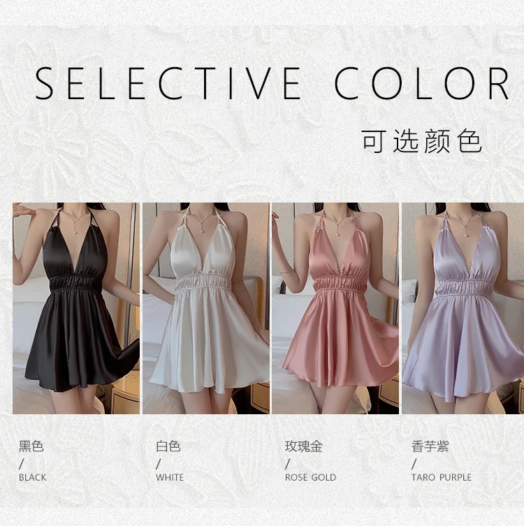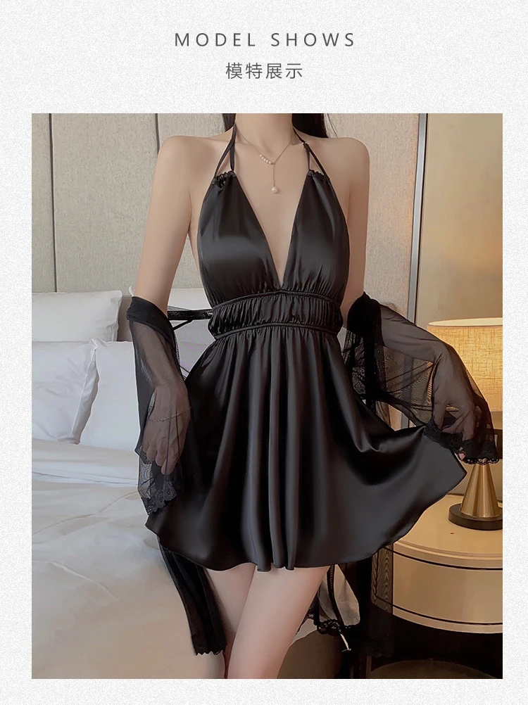 Plus Size Sexy Nightgown with Halter Neck Mesh Chest Pad