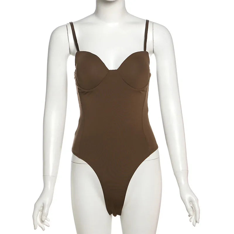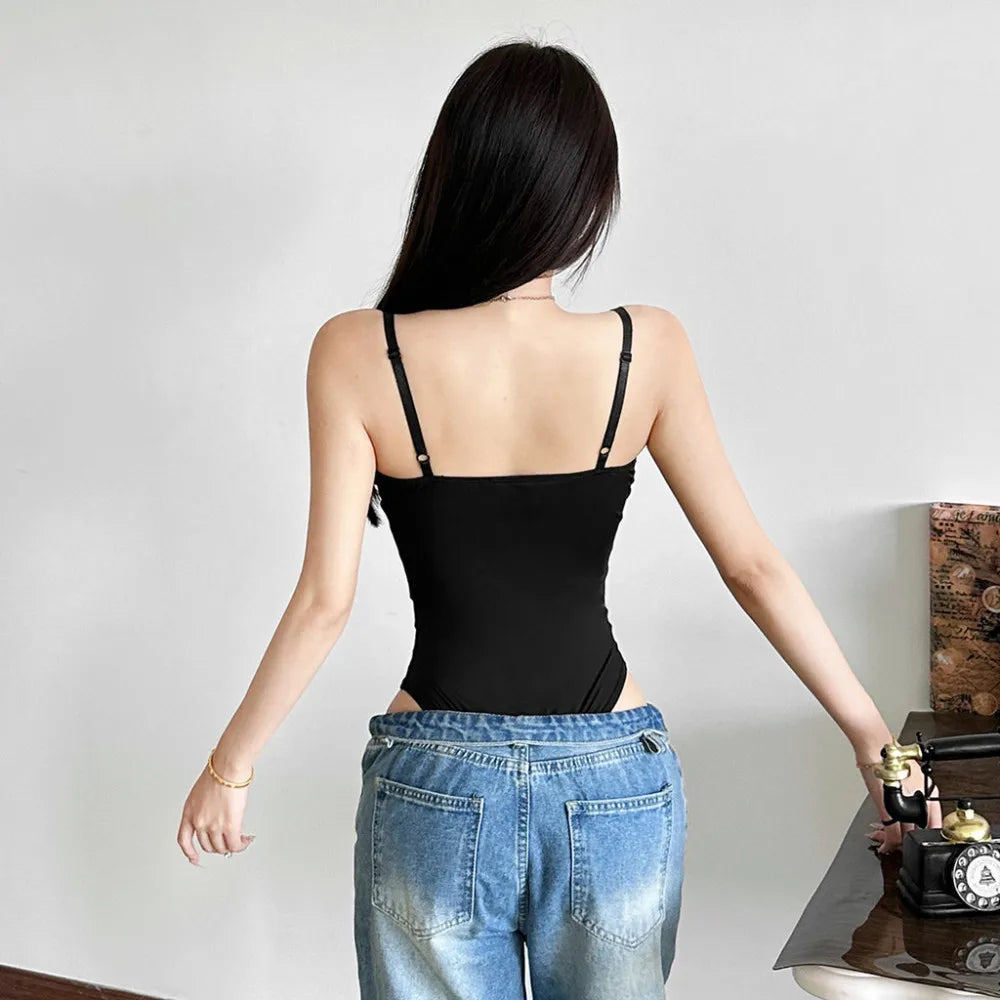SylCue Sexy Fashion Bodysuits Women Wrapped Chest Backless Sleeveless Shaped Waist Skinny Stretch Street Wild Style Solid Tops