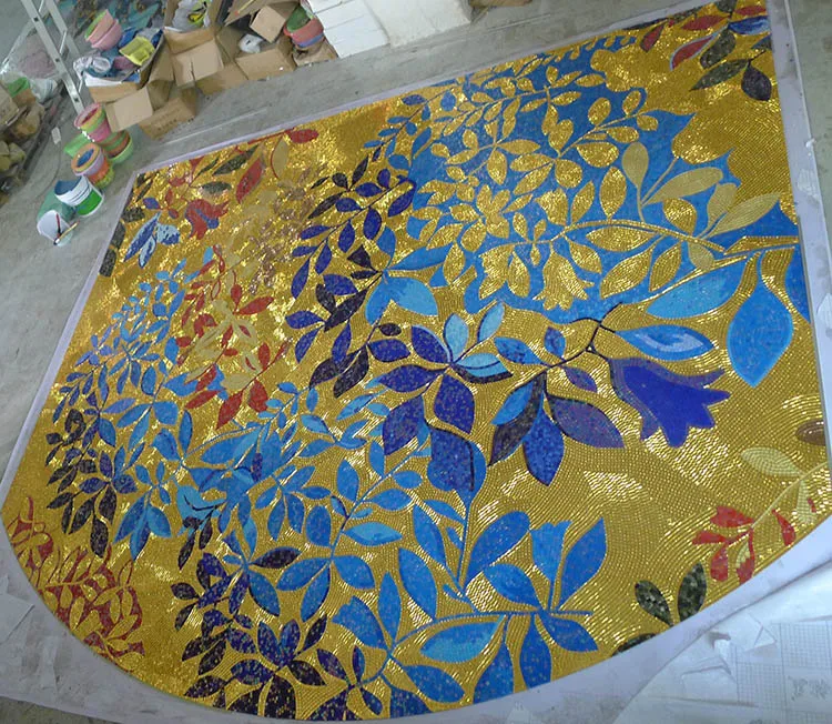 Modern Art Deco glass mosaic wall panel with leaf pattern
