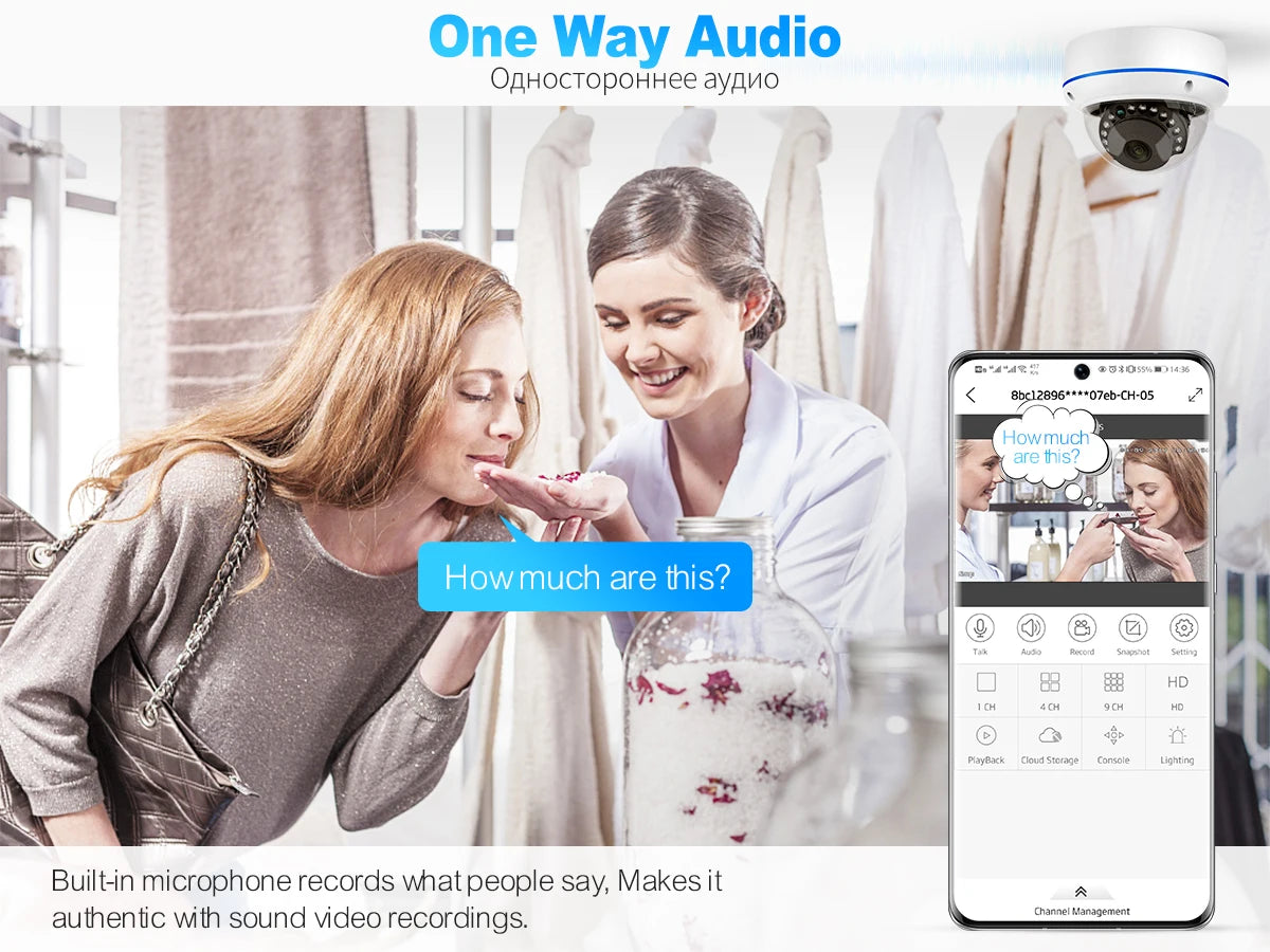 14) Device: DC 12V 2A/1A (DC 12V) or 48V PoE Switch (PoE)2. Size: 1/2 * 4MP/ 5MP купольная камера