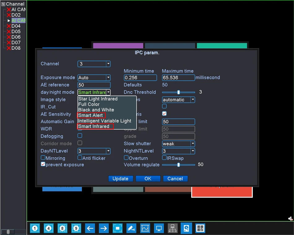 There only have 2 Options (other option doesn't work): " Smart Alert " and " Smart Infrared " model