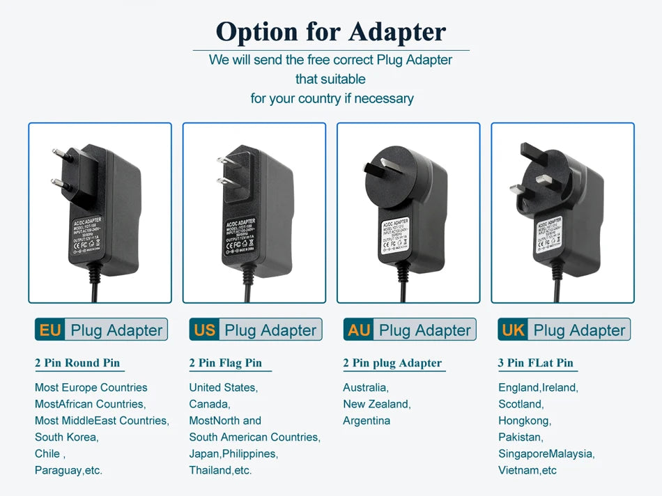 You can buy 12V Power Adapter in here (12V 1A 3 meters)