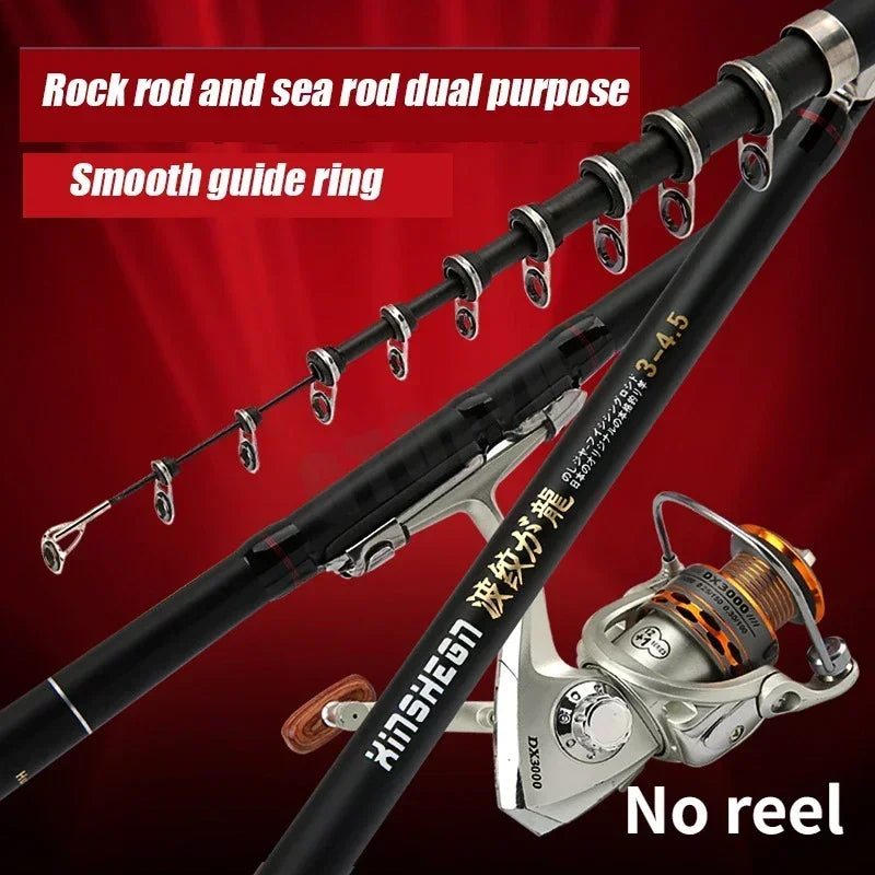 Rocky Fishing Telescopic Portable Rotary Multi-purpose Fishing Rod is a great choice for fishing enthusiasts. With flexible lengths such as 2.7M, 3.6M, 4.5M, 5.4M and 6.3M, the product meets all needs from river and sea fishing to boat or rock fishing. Compact, easy-to-fold design helps you carry it anywhere. Durable, sturdy material for a smooth, effective fishing experience. Come with Rocky Fishing to enjoy great trips!