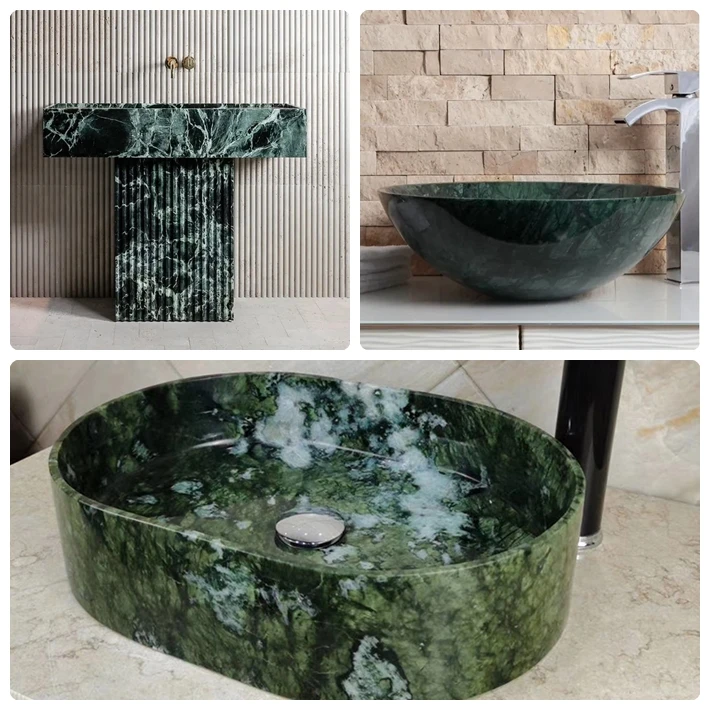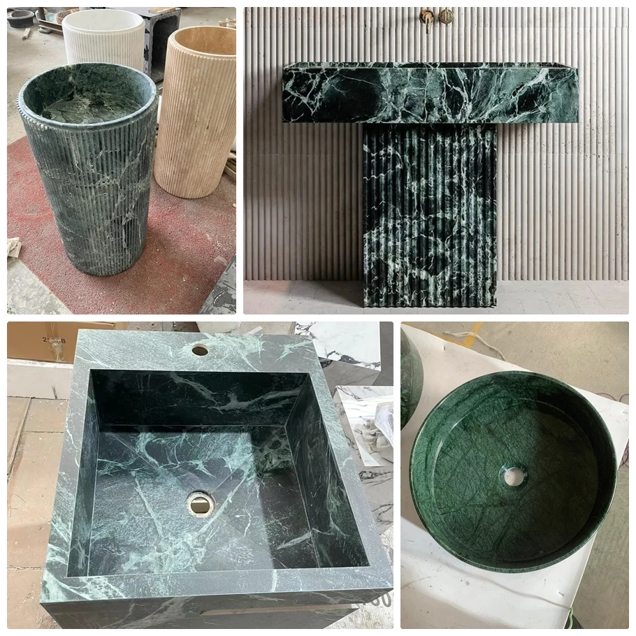 Popular Design Natural Verder Alpi Green Marble Wash Basin for Hotel Bathroom Free Standing Marble Wash Basin Cylindrical Wash Basin |