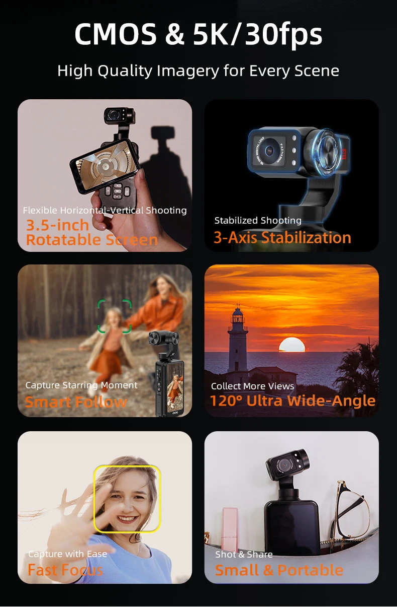 Tokdance 5K Anti-Shake Sports Camcorder, Night Recording