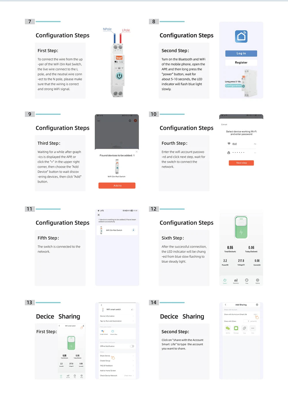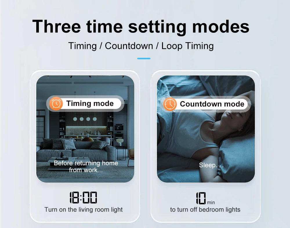 Wiring: Power must enter from the top and must be Live line + Neutral Line (L+N). Live line + Live line (L+L) cannot be used.