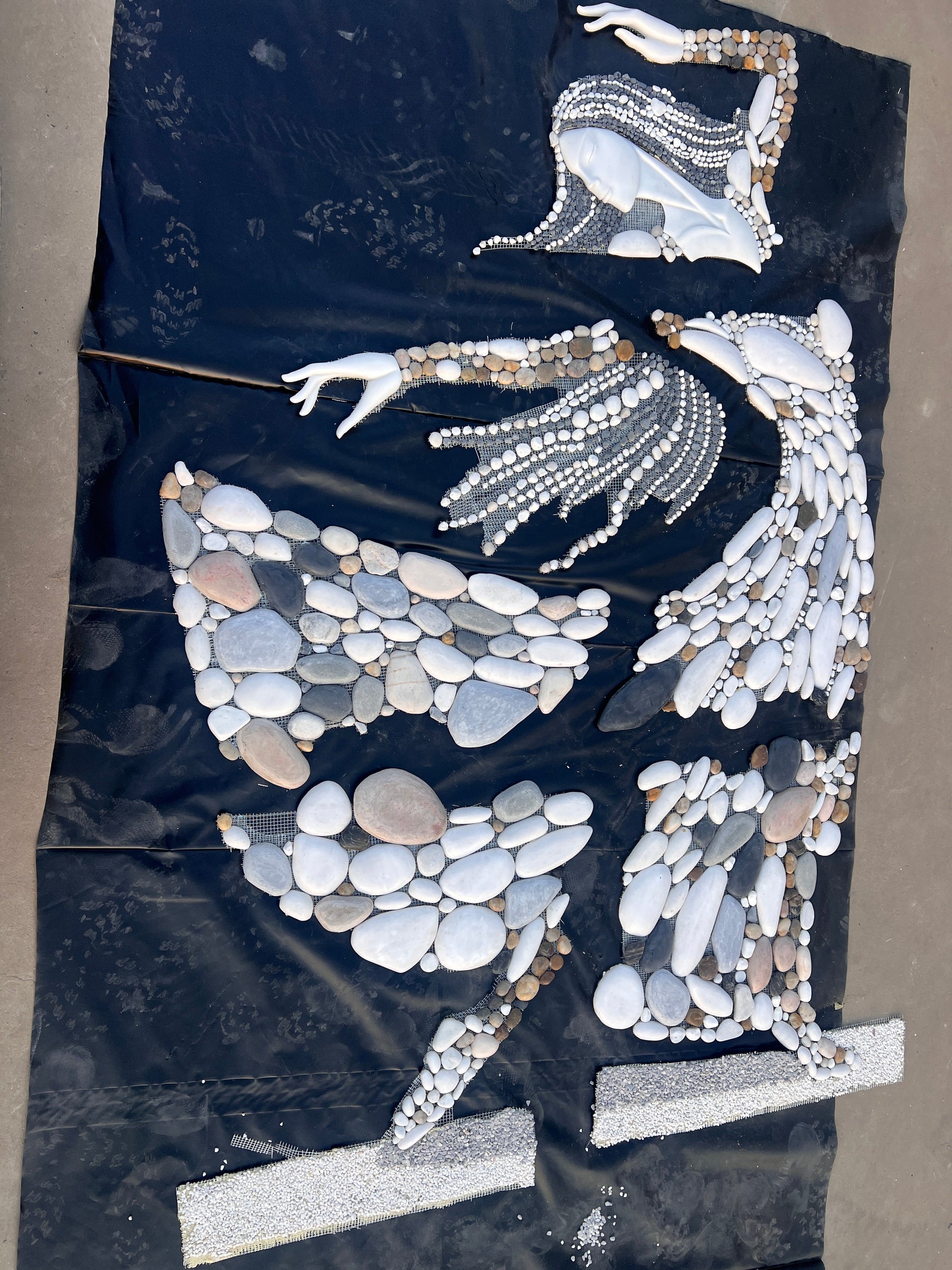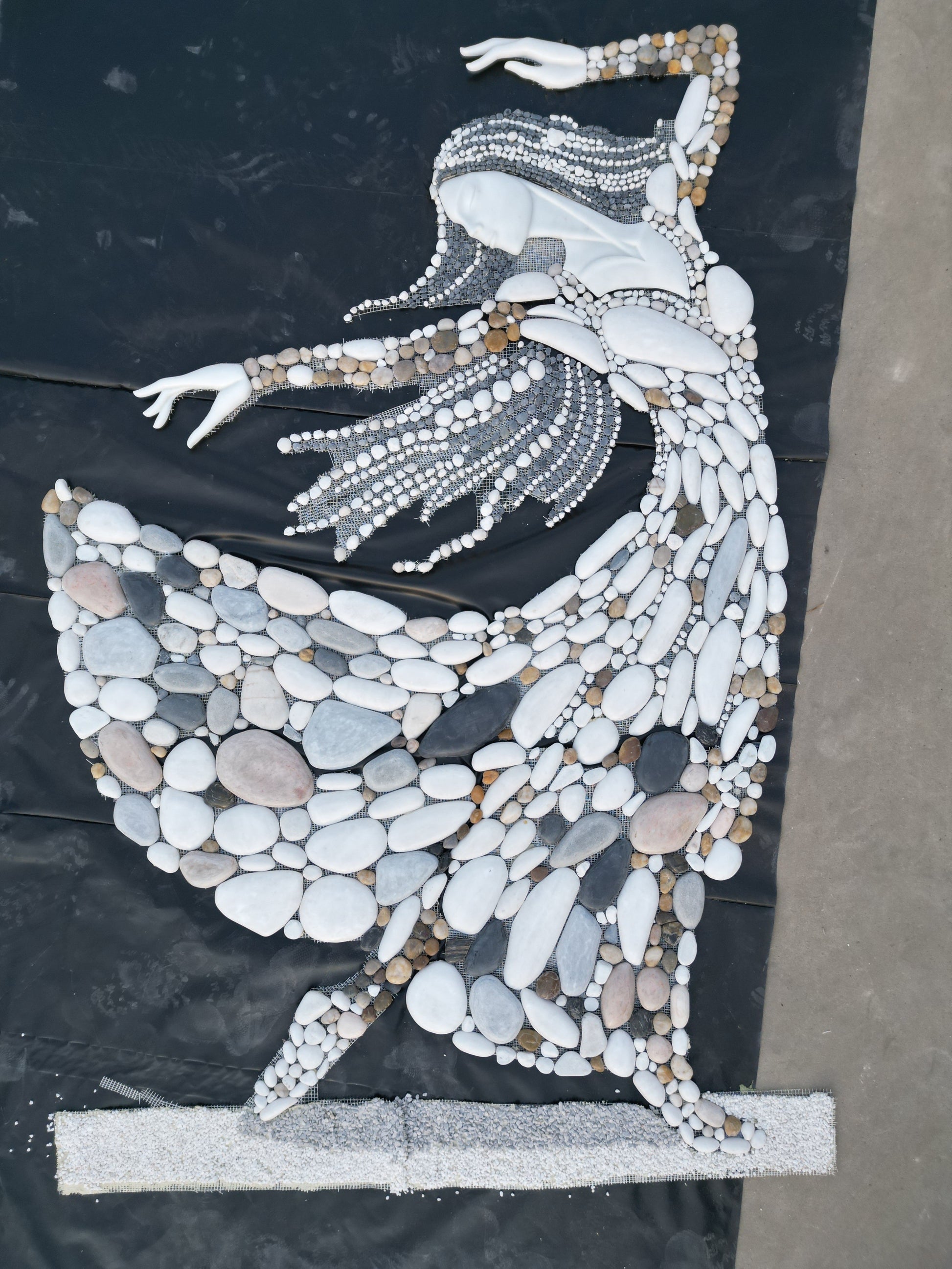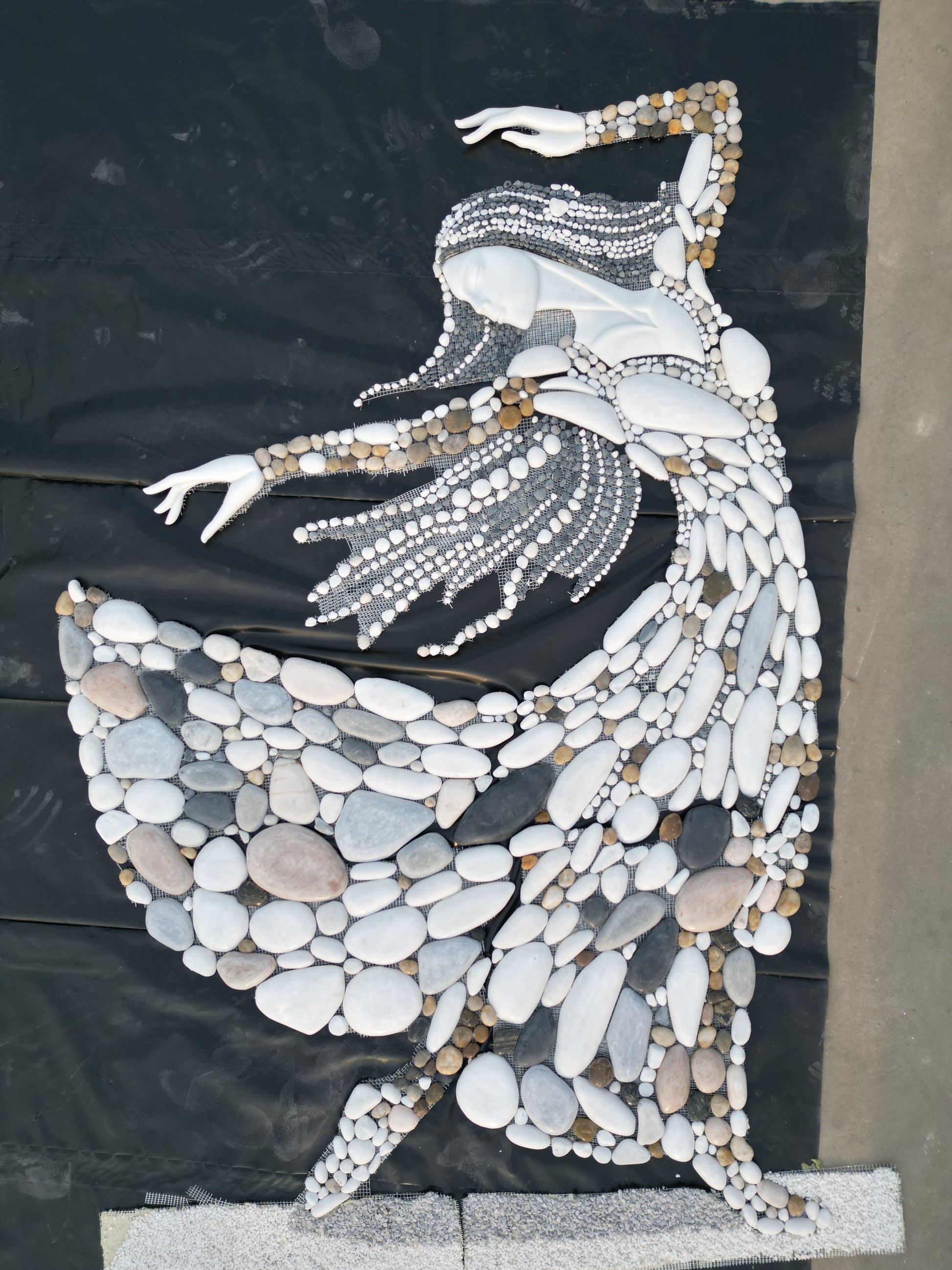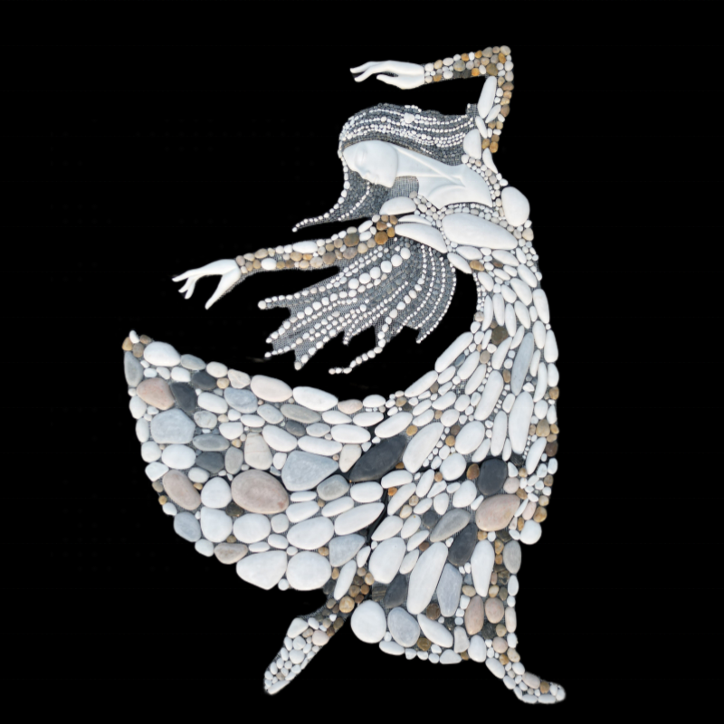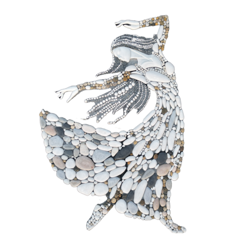 Multi-colored natural stone mosaic painting of women wearing clothes