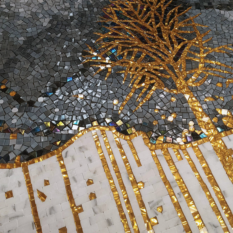 Ceramic mosaic art with tree motifs