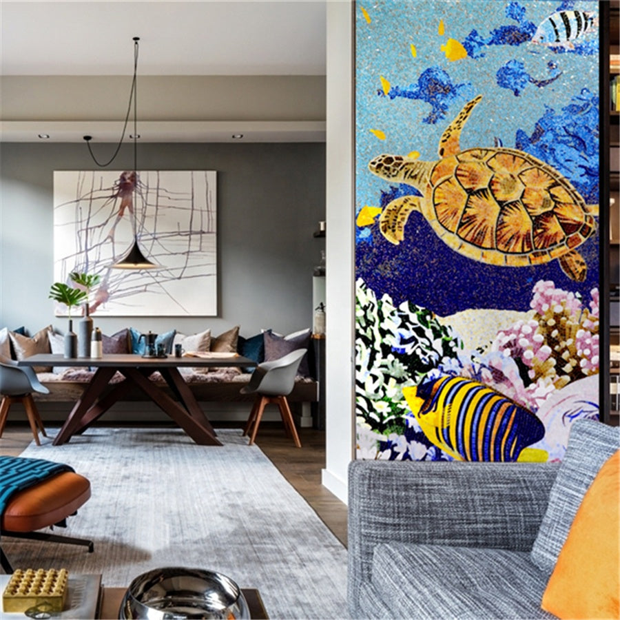 Beautiful hand cut turtle animal glass mosaic, custom tiled