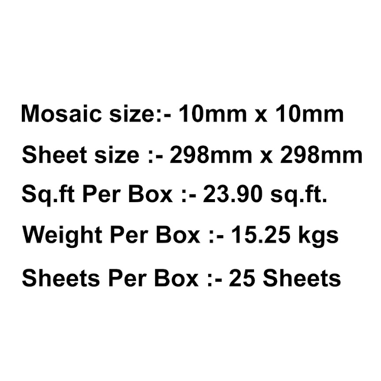 - 10mm mosaic glass material for durability, gloss and outstanding light catching ability.
