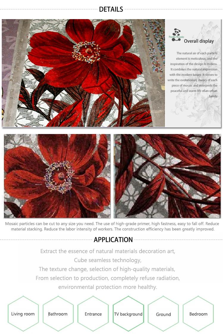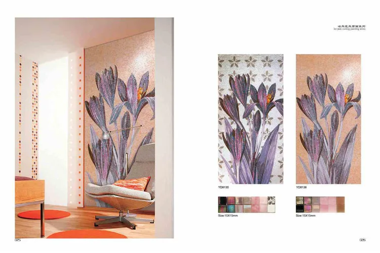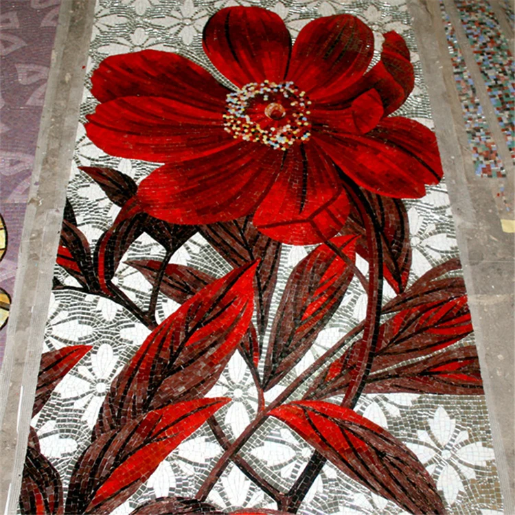 MB SMM 01-9 Artistic glass mosaic wall painting, mosaic wall tiles with floral motifs