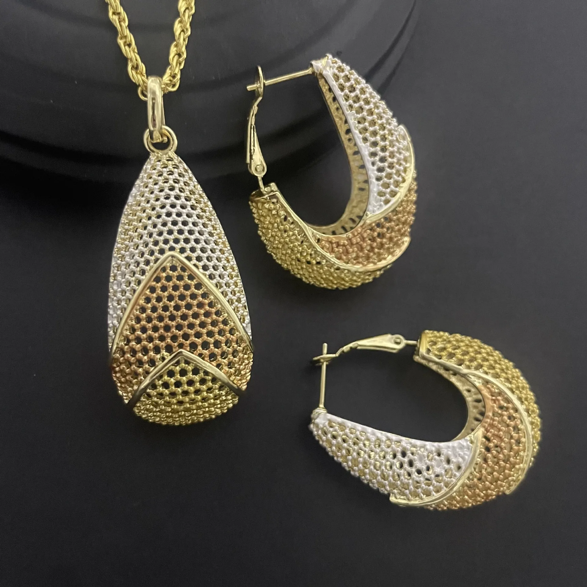 24K Dubai Jewelry Set: Gold Earrings & Necklace