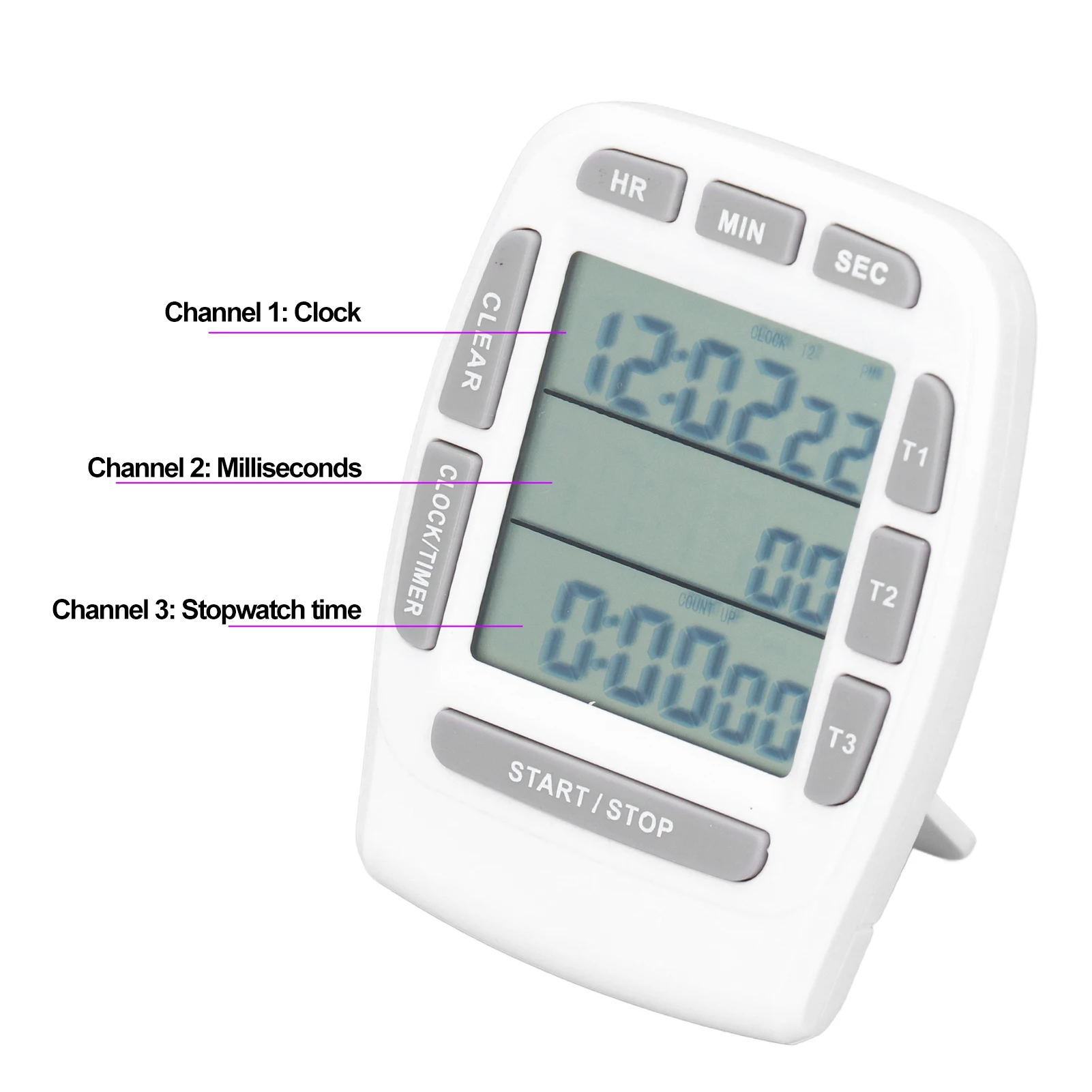 1. 3 Sets Display: The range of count up and countdown are both 99 hours, 59 minutes and 59 seconds.2. Beep Reminding: The superior triple display timer will beep for 1 minute once it reaches the set time.