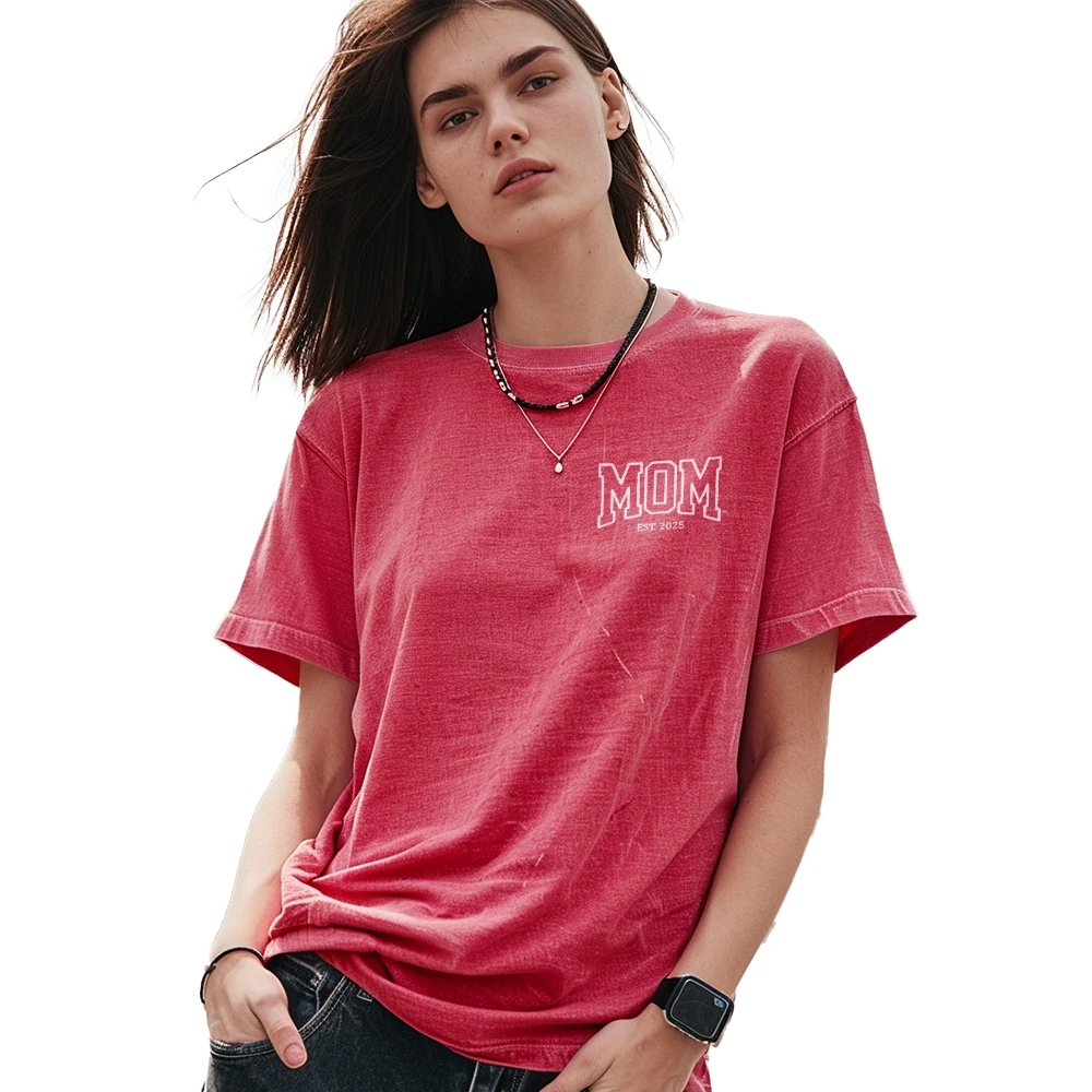 Unisex T-shirt Embroidered with MOM EST 2025 Denim Style