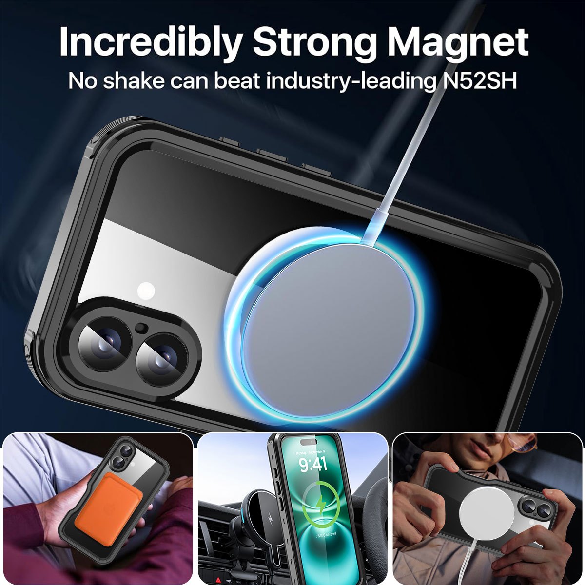 【Strong Magnet & Secure Grip】 For Phone 16 Magnetic Case Features A Strong Magnetic Ring That Enhances The Connection To Be Compatible With Most Magnetic Accessories. This Includes Wireless Chargers, Magnetic Car Mounts, Magnetic Battery Banks, Magnetic Wallets, And More. With This Case, There's No Need To Remove It When Charging. The Perfectly Aligned Magnets Enable Faster And Easier Wireless Charging Than Ever Before, Providing A Secure Grip