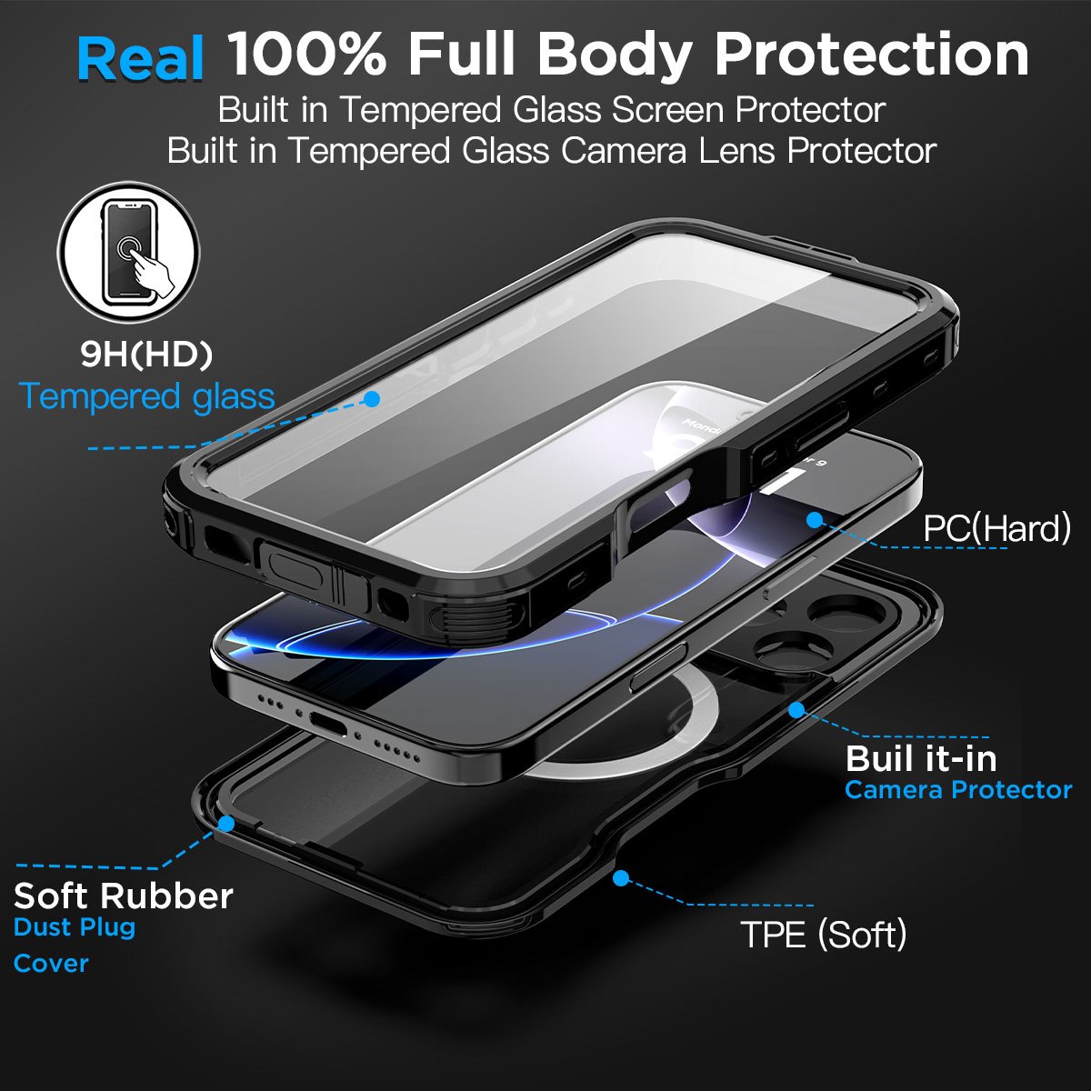 【HD Built-in Screen & Camera Protector】The Phone 16 Waterproof Case Specially With Built-in Screen Protector. 0.33mm Tempered Glass Maintains 99.99% Response Sensitivity And Never Scratches. Specially Designed Black Camera Lens Protector Offers Enough Protection For The Phone Camera From Highly Impact And Brings Pristine Beauty To Every Photo.The Elaborate Design Of 2.5 Mm Lips Over The Camera, 1.5 Mm Bezels Around The Screen On The Back Provides Extra And Comprehensive Protection
