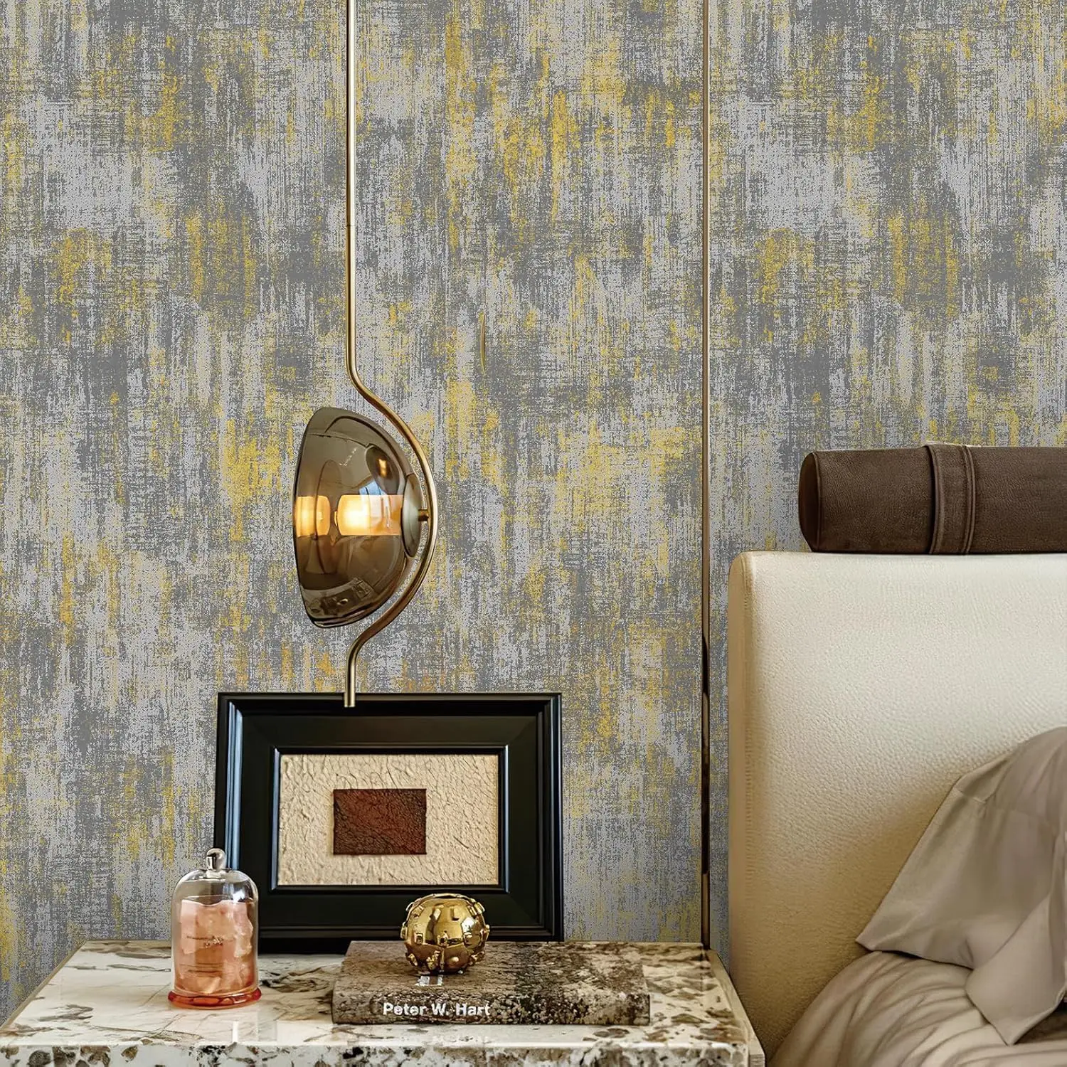 Vintage Black Gold Metallic Peel and Stick Wallpaper Self Adhesive Industrial Metallic Concrete Wall Paper Stick on Wallpaper