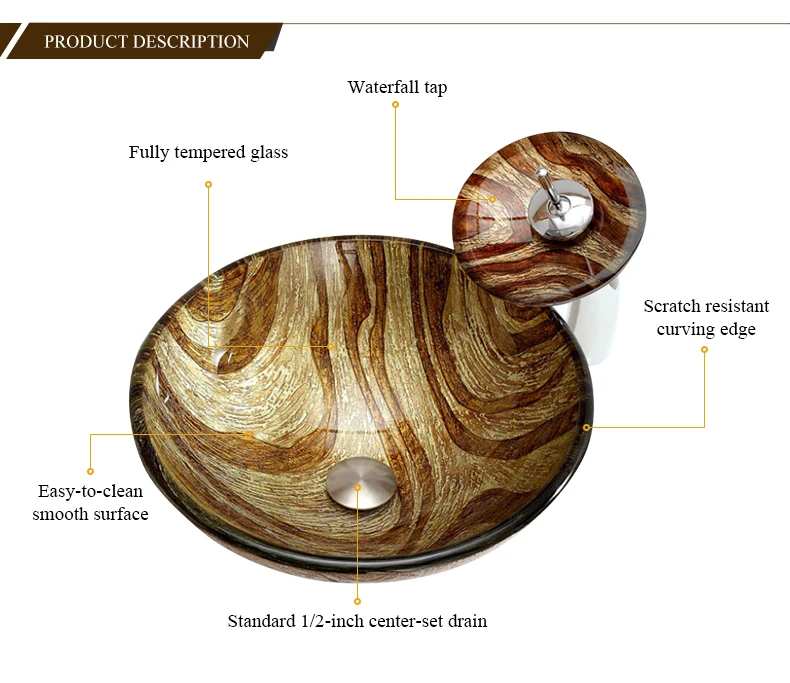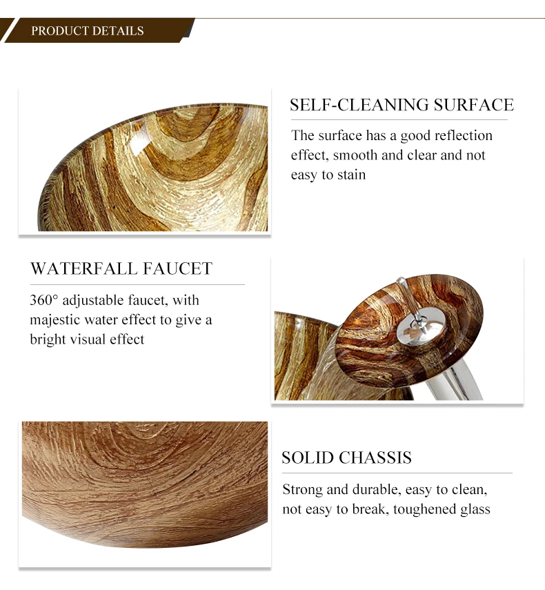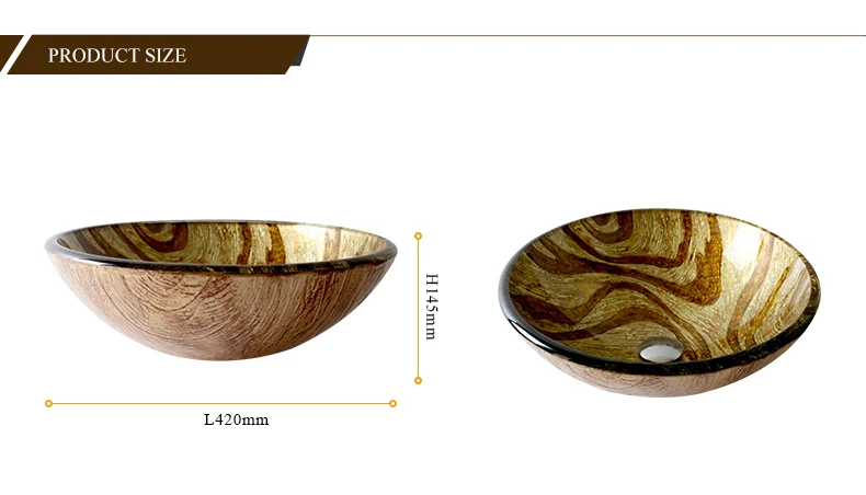Classic round wash basin faucet with yellow zebra pattern, hot and cold wash basin, glass art wash basin