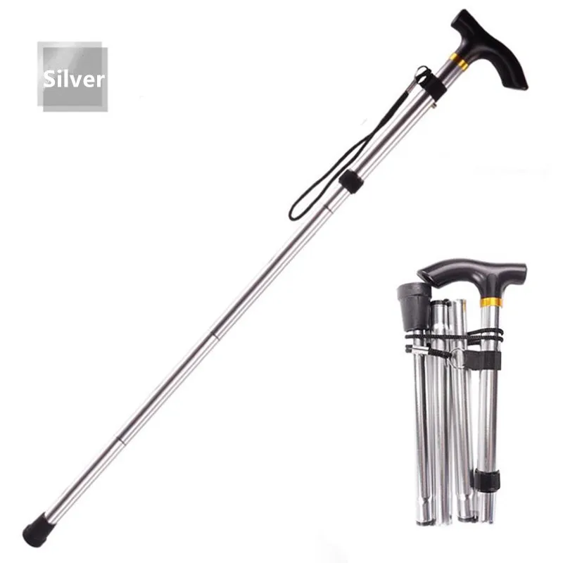 Walking Stick Telescopic Baton Hiking Trekking Poles Aluminum Alloy Metal Folding Cane Crutches Pole For Elderly People