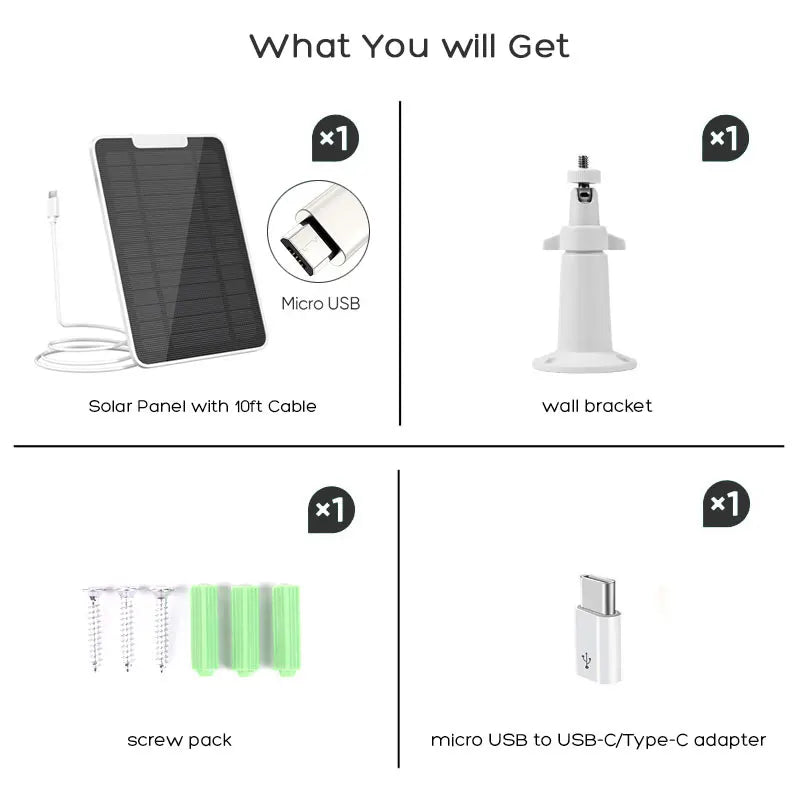 This solar panel can continuously absorb solar energy and keep the camera powered when sunny.No need frequently uninstall the camera and charge the camera manually again.