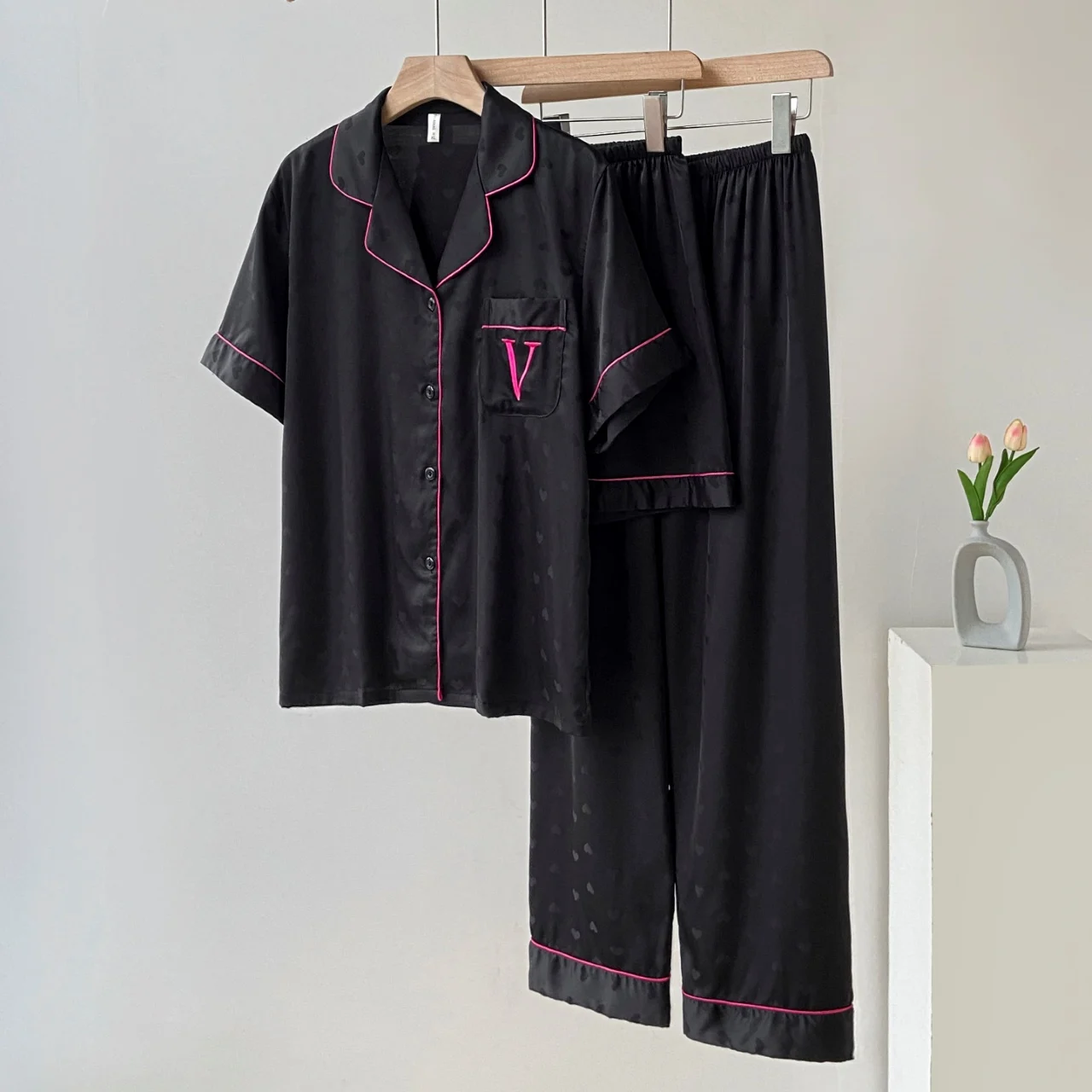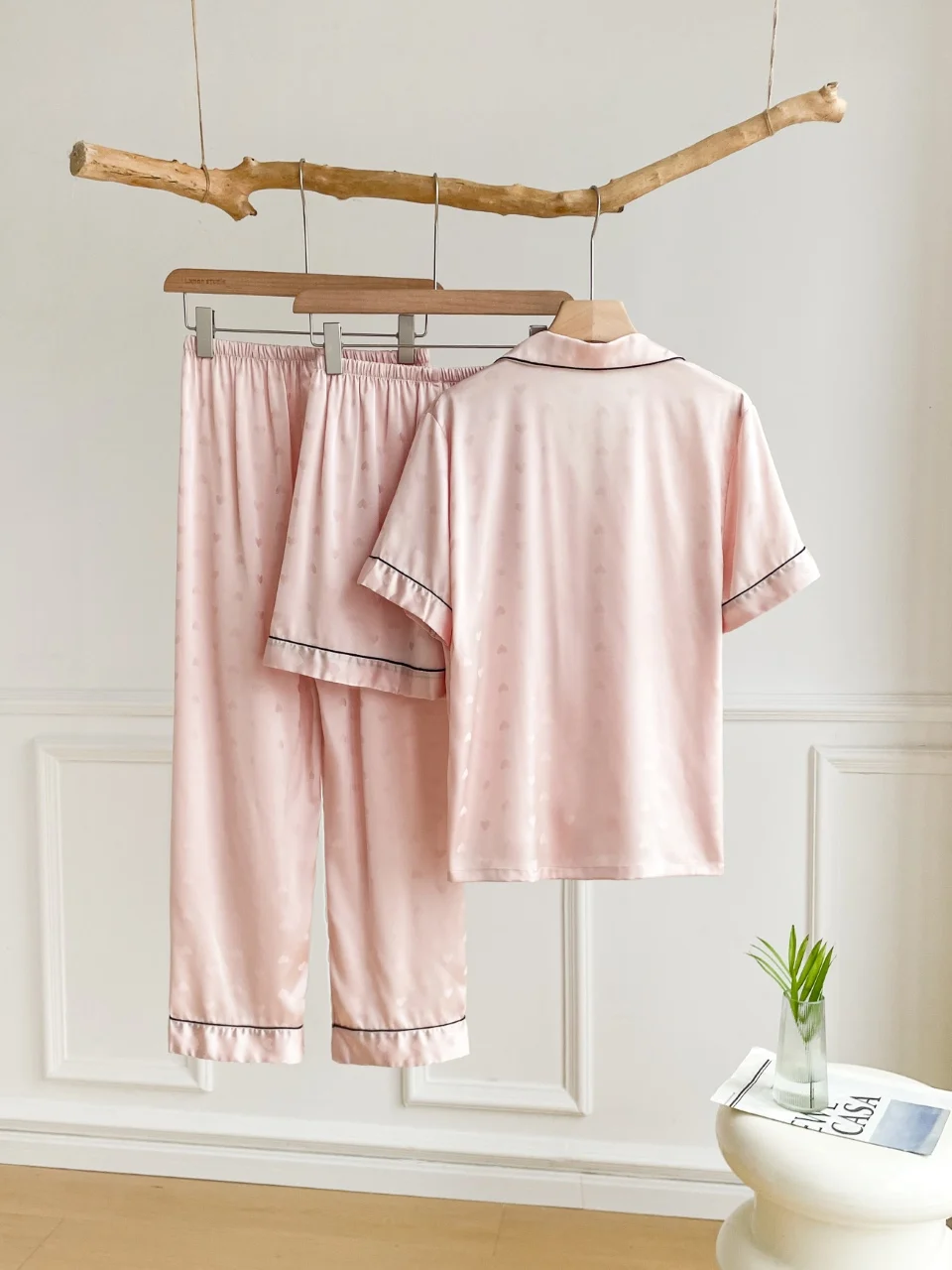 High-end Fashion Three-Piece Cool Silk Women's Pajamas Set