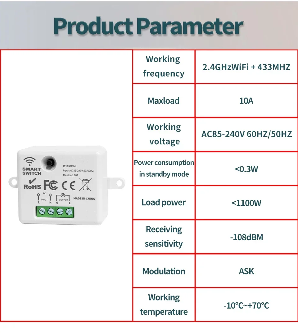 433MHz Smart Switch Remote Control 1/2/3 Buttons