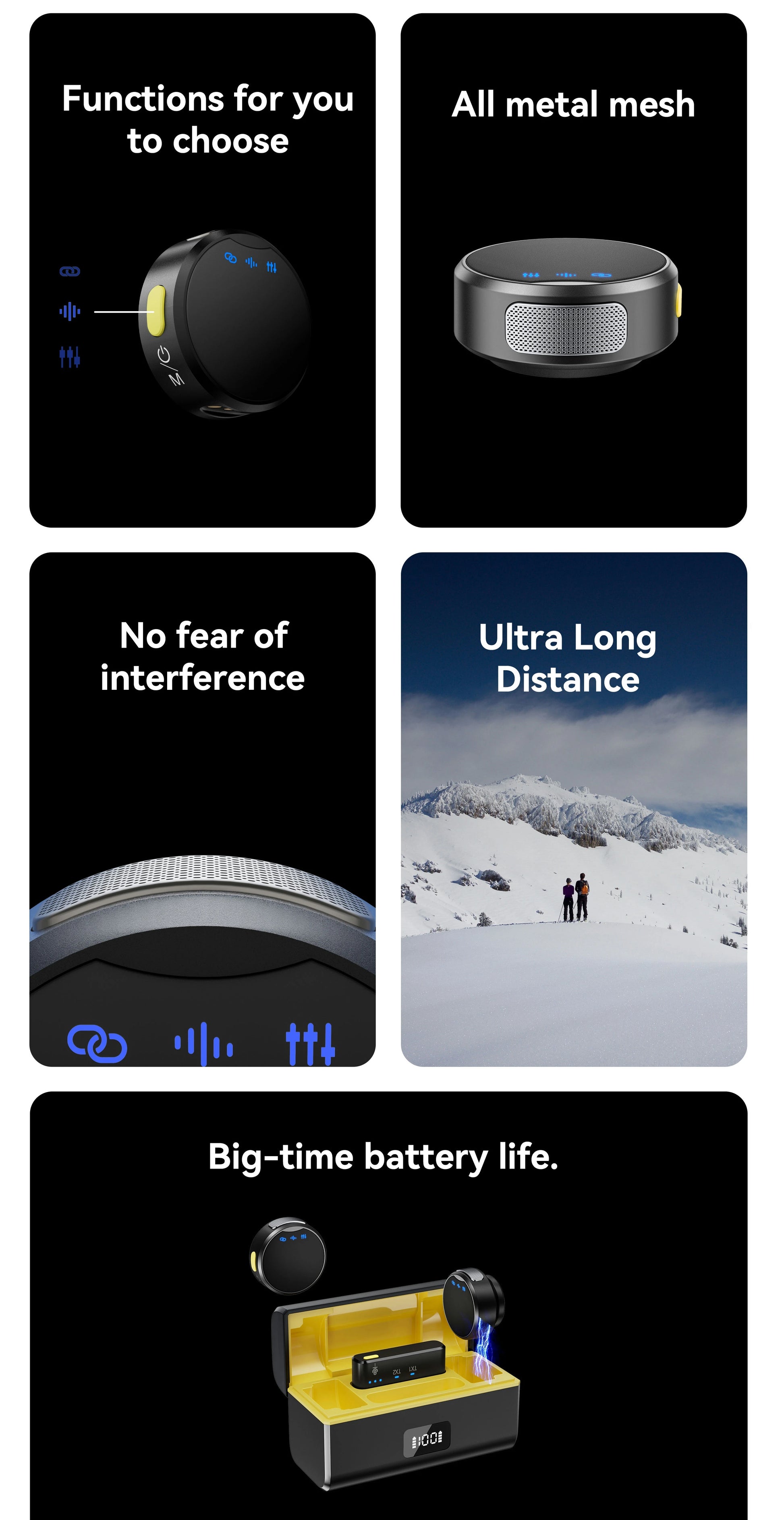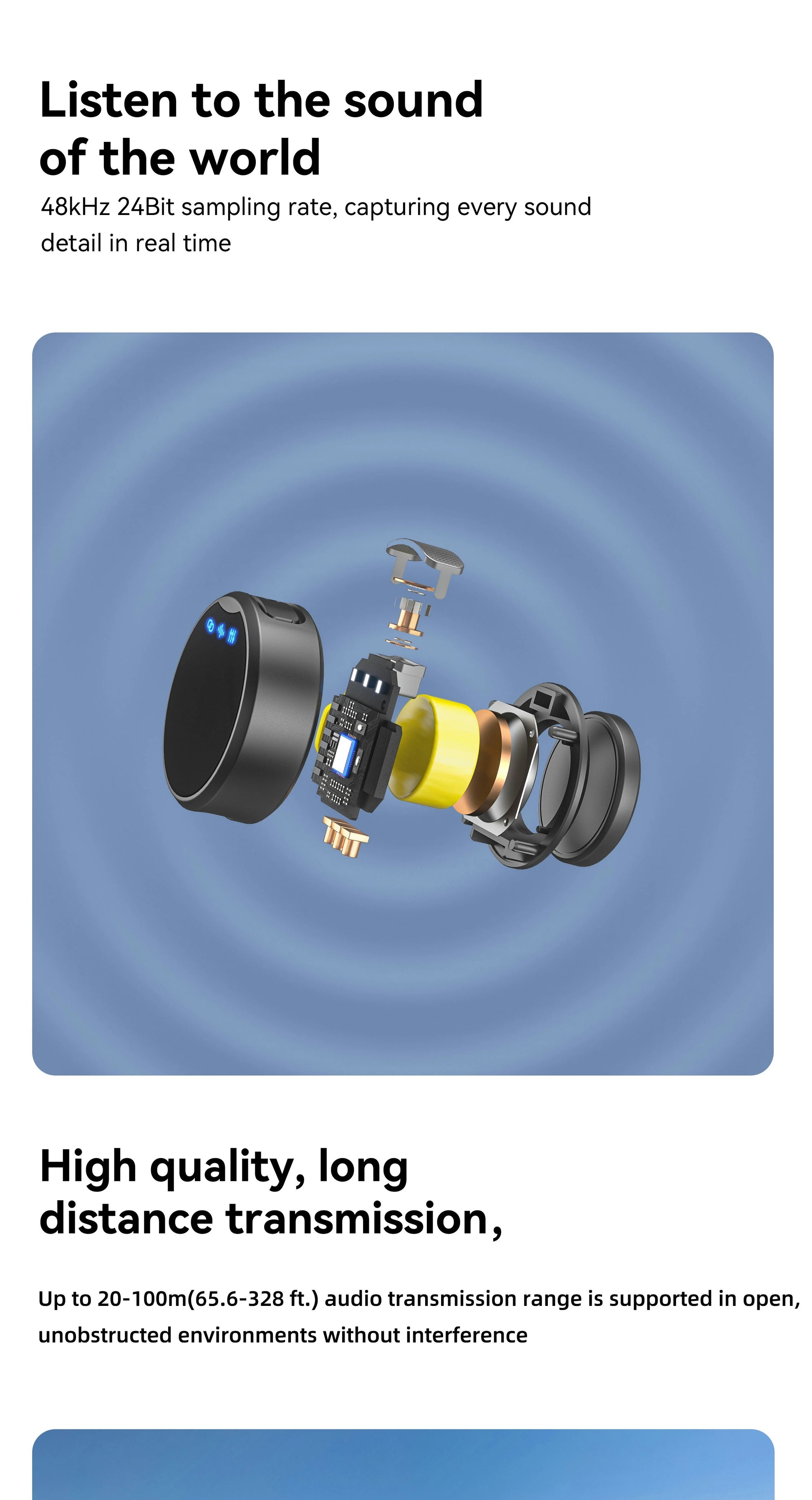 The first Magnetic Button Microphone - With a weight of only 9g, the sampling rate is as high as 48kHz 24Bit, bringing nearly zero loss and no distortion to the native sound. The design of the button microphone subverts the traditional aesthetics, not only turning the microphone into a fashion accessory, but also making recording more burden-free. Solve the traditional wireless microphone is too heavy and unattractive prohibited.