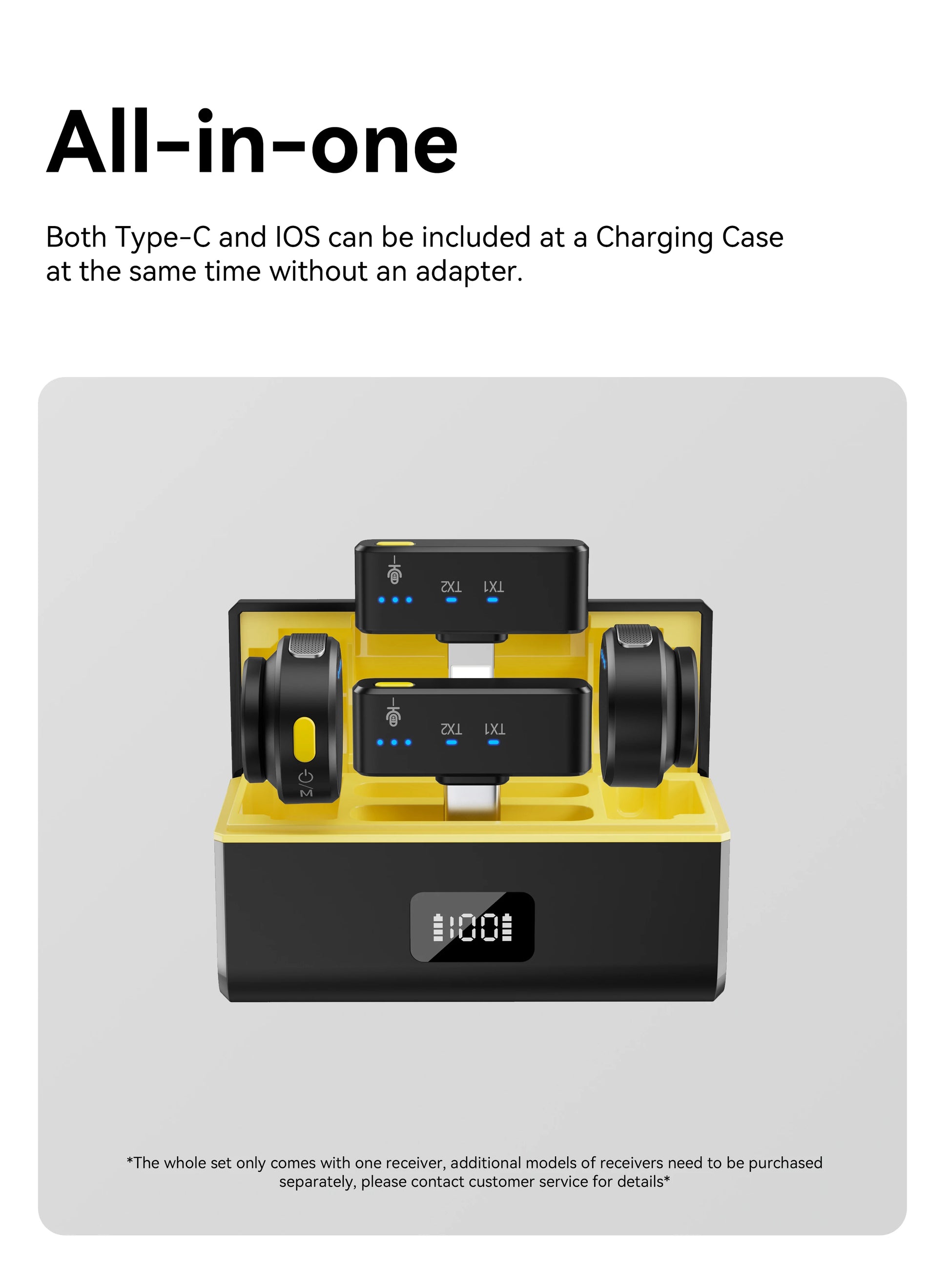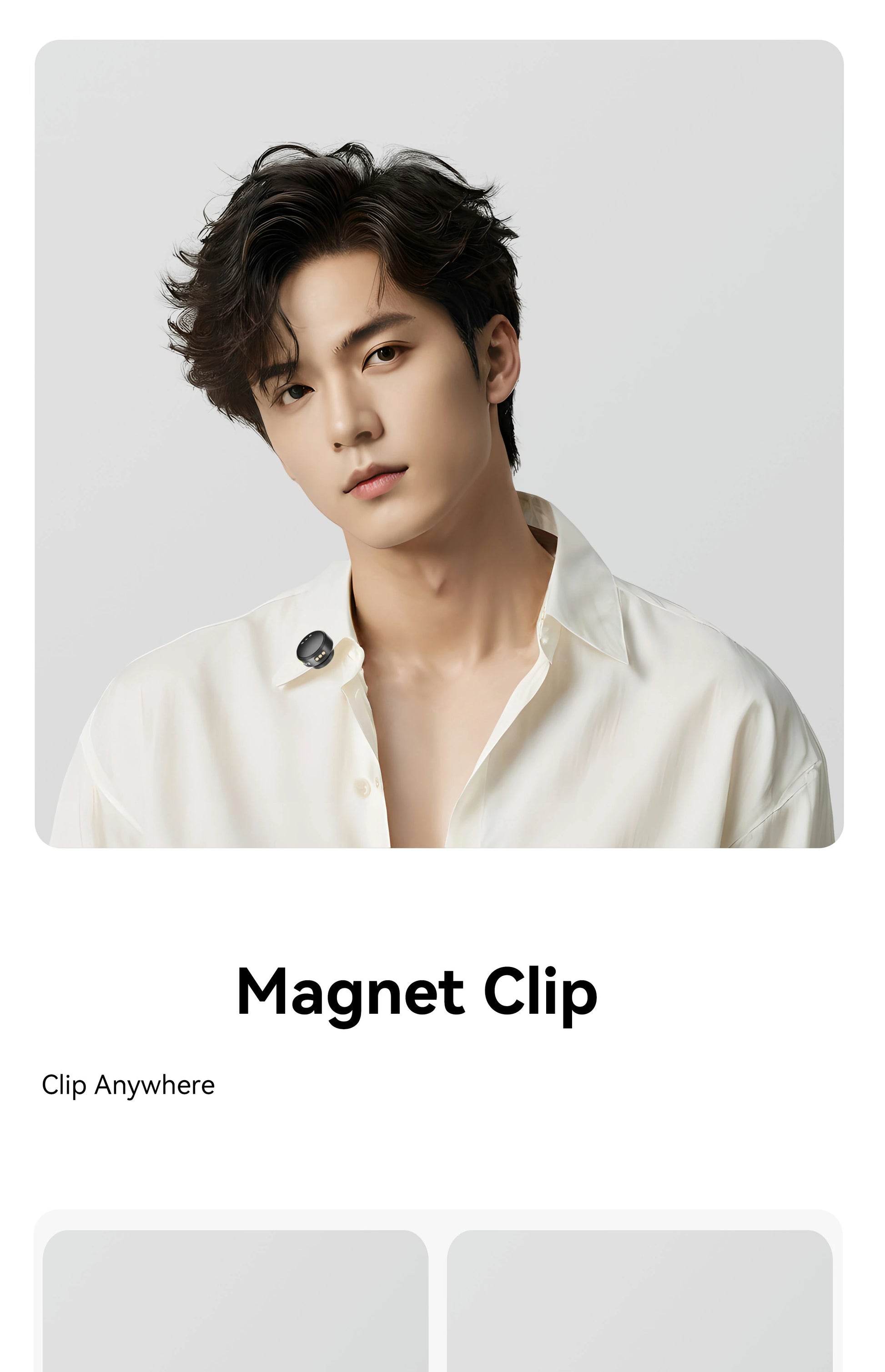 The first Magnetic Button Microphone - With a weight of only 9g, the sampling rate is as high as 48kHz 24Bit, bringing nearly zero loss and no distortion to the native sound. The design of the button microphone subverts the traditional aesthetics, not only turning the microphone into a fashion accessory, but also making recording more burden-free. Solve the traditional wireless microphone is too heavy and unattractive prohibited.