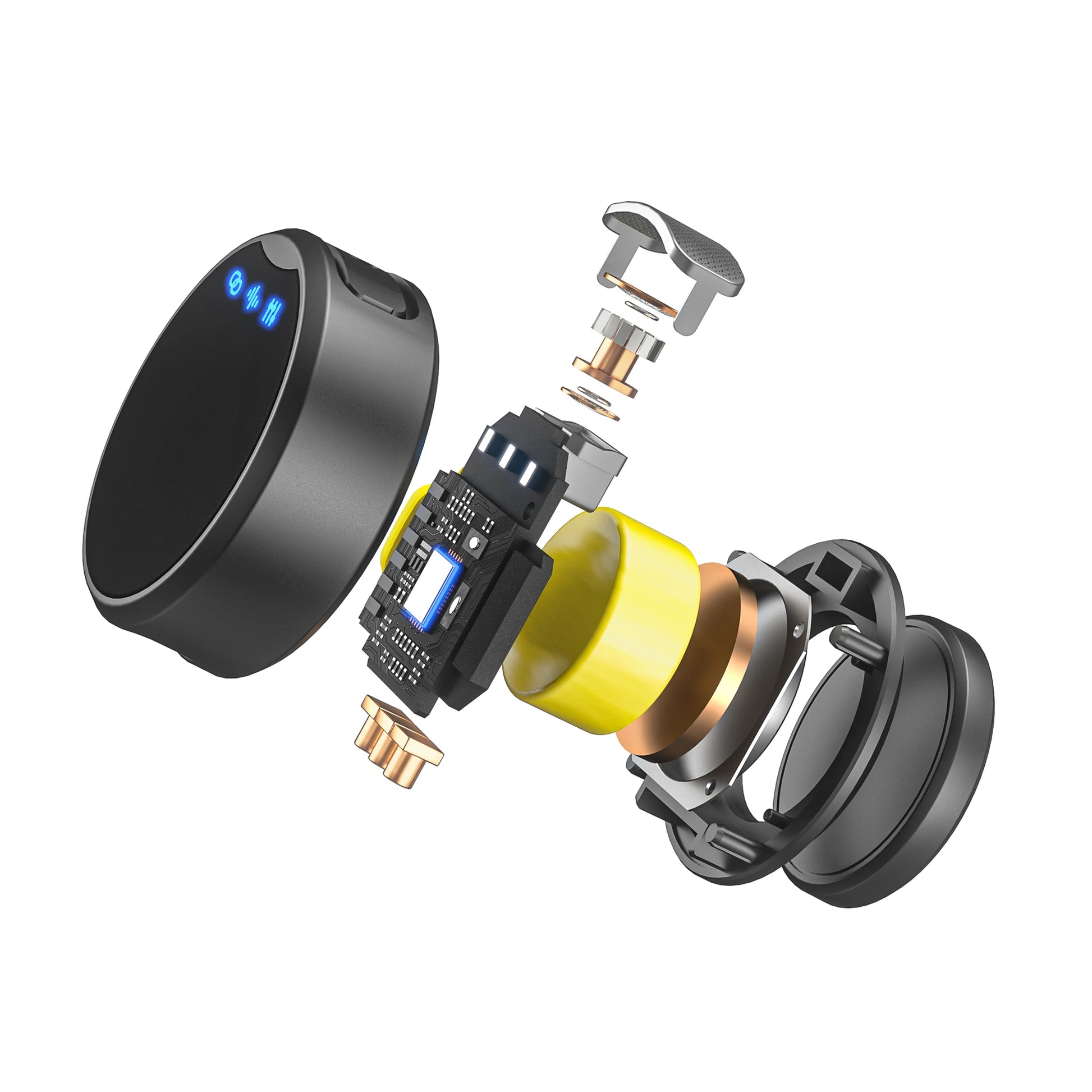 Magnetic button wireless microphone, it can be conveniently attached to clothing or hats, providing users with a more stable and accurate recording experience. Specifically, this design utilizes the principle of magnetic attraction, where the magnetic components on the microphone can adhere to specific buttons or other magnetic objects, thereby securing the microphone in the appropriate position.