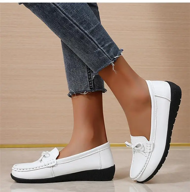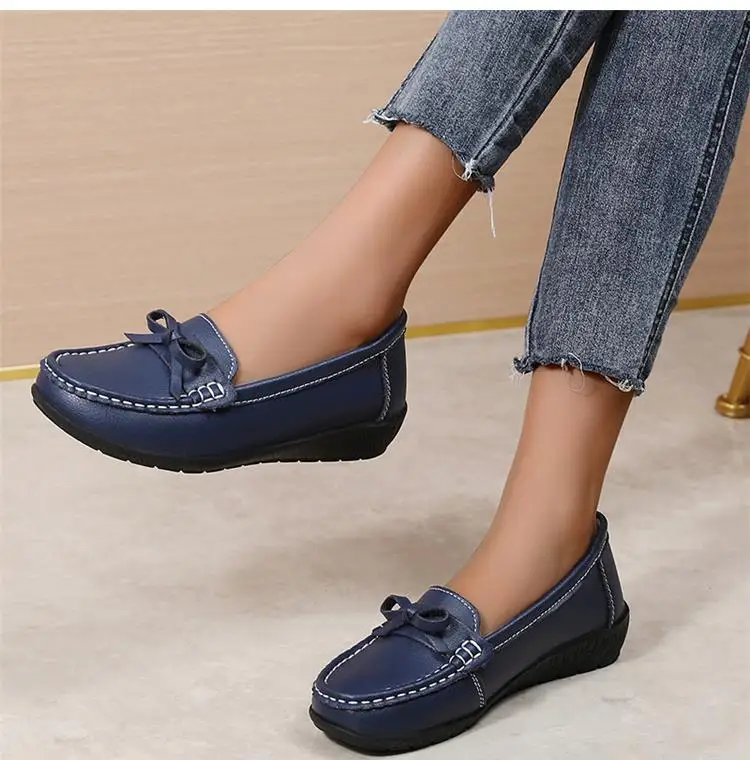 Women Flats Fashion Wedge Genuine Leather Outdoor Nurse Shoes Slip On Designer Shoes Moccasins Walking Plus Size Shoes Woman