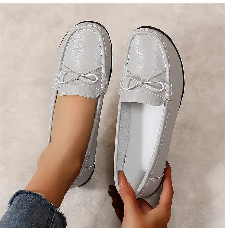 Women's Genuine Leather Loafers - Fashionable, comfortable wedge sole