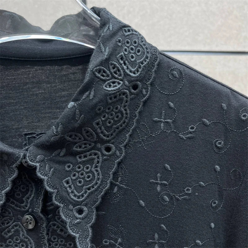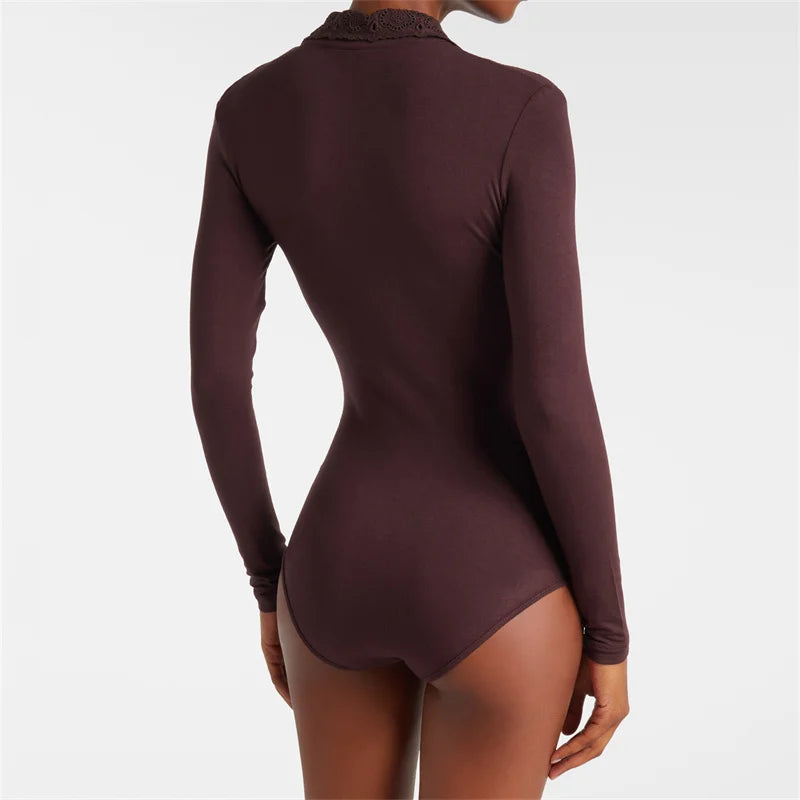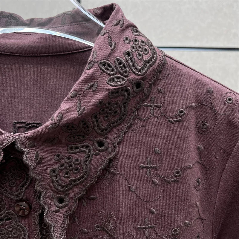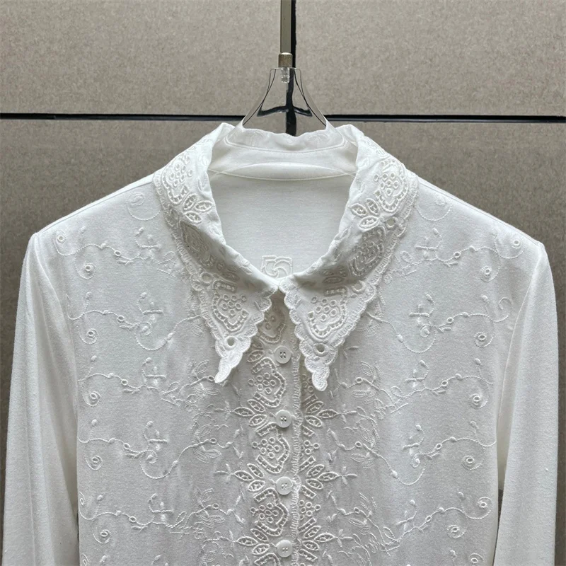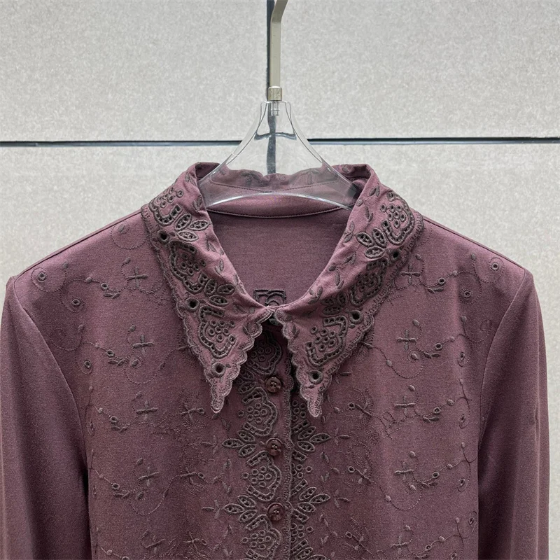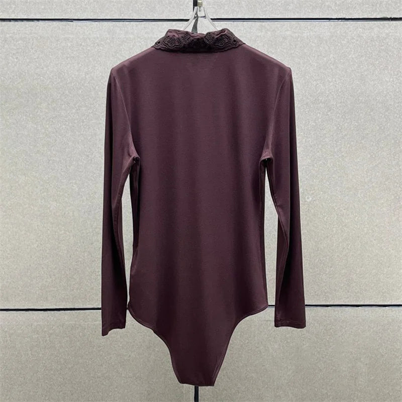 Women's bodysuit New elastic slim fit lapel long sleeved top for autumn 2025 floral embroidery women's corset y2k women's bodys