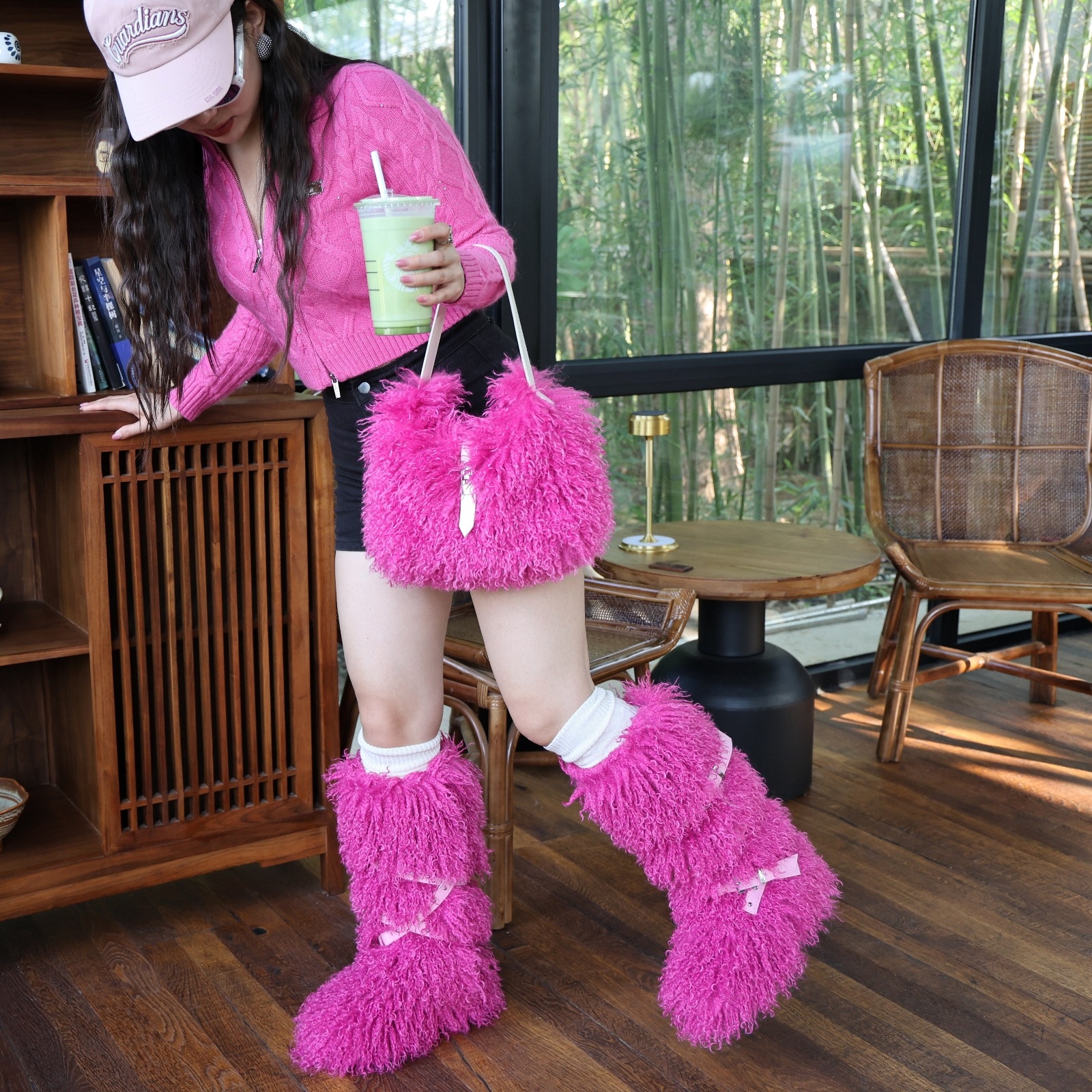 Women's Faux Wool Handbag - Soft & Elegant Crossbody Bag