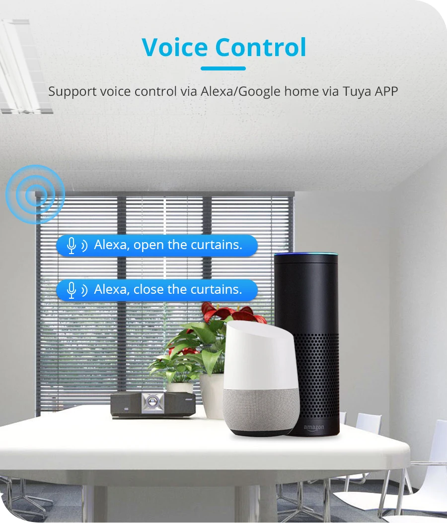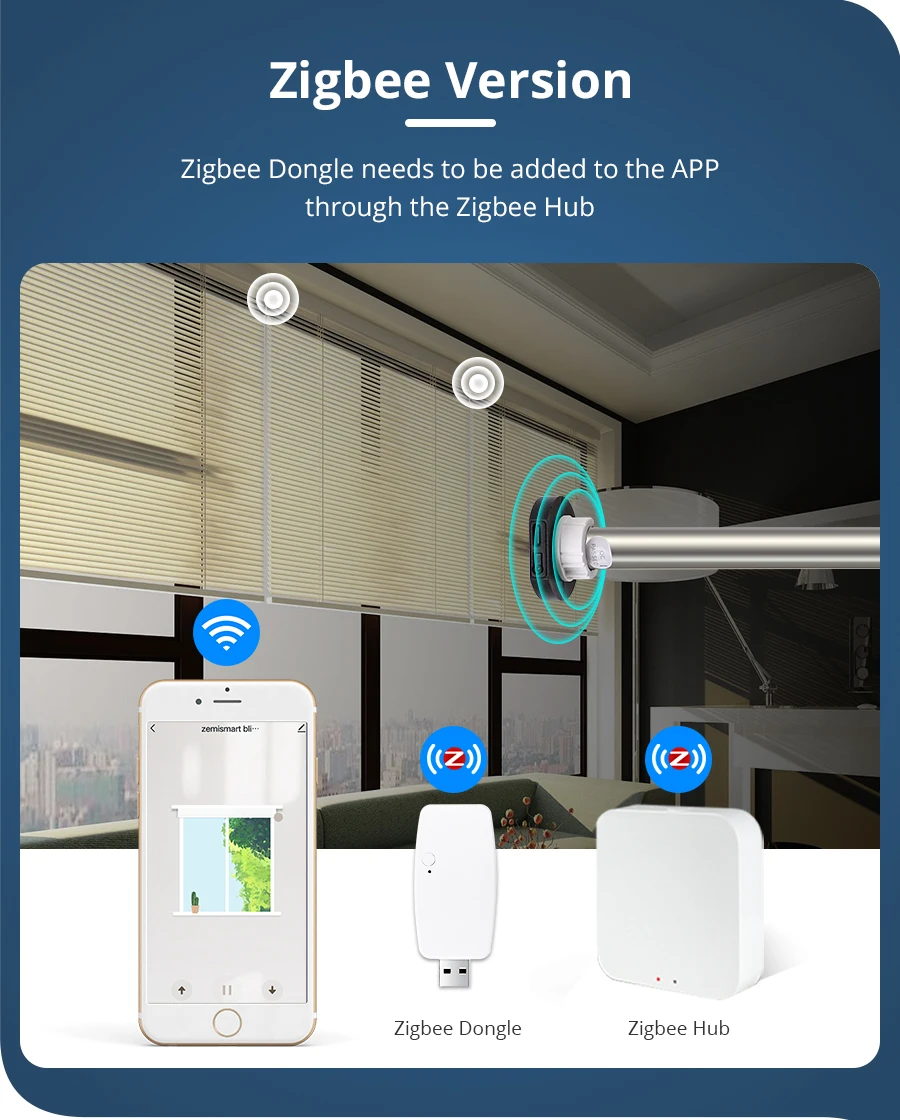 - With Zigbee Dongle: Work with Tuya Zigbee hub, you can control motor up or down via Voice or APP on your mobile phone.
