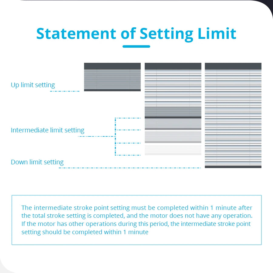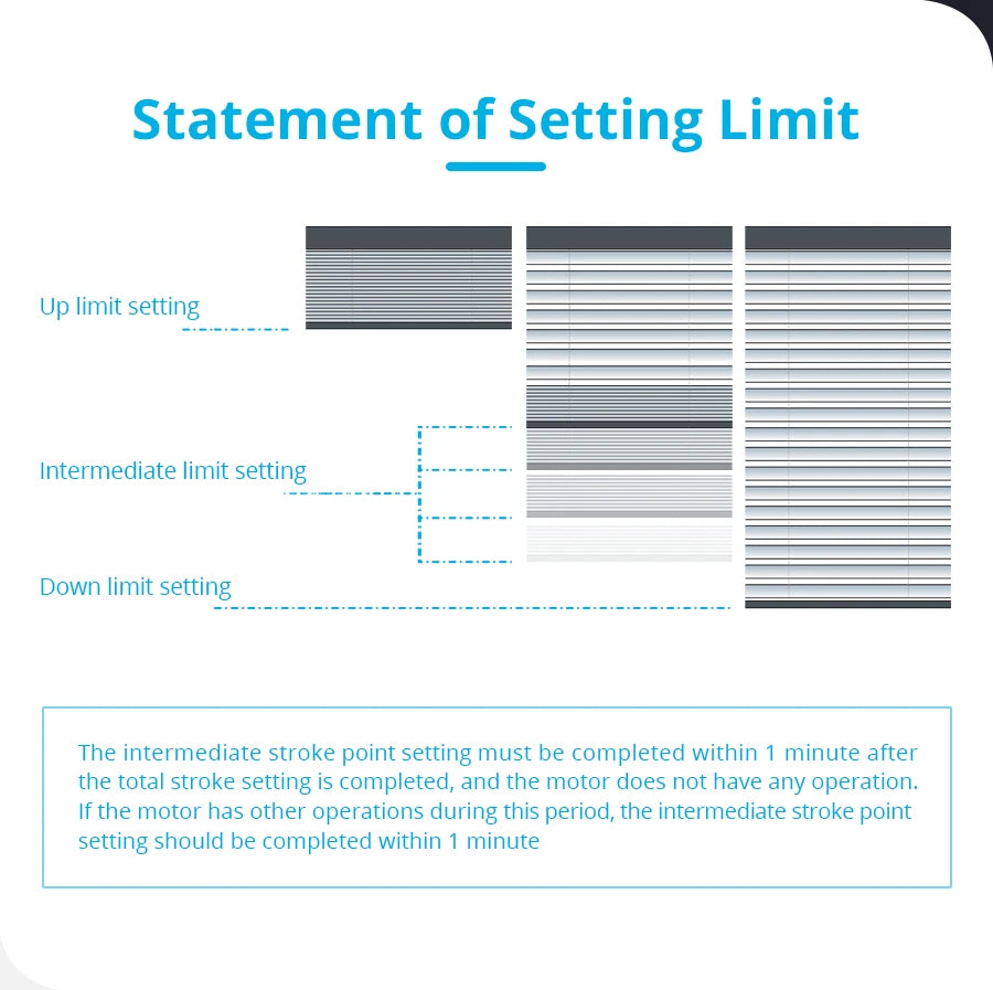 -Only the remote control can be used to set the middle limit of the motor. App can't set the middle limit, only the upper and lower limit of the motor.