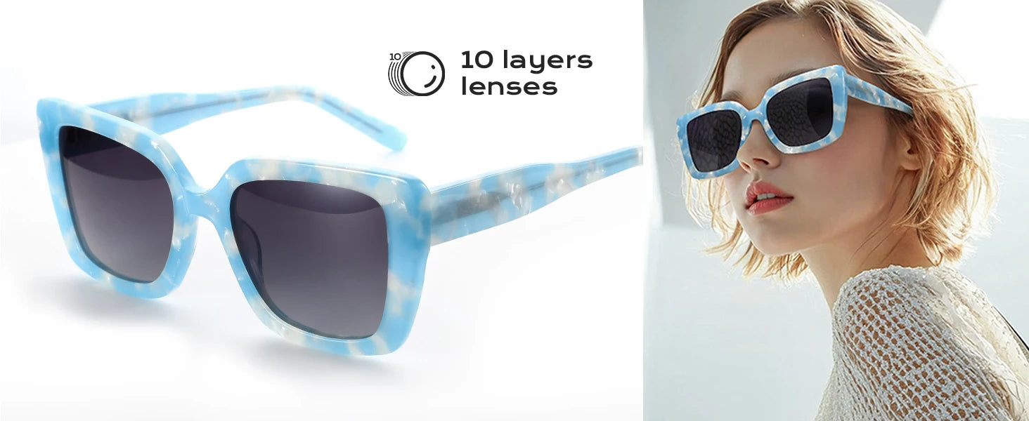 ZENOTTIC Fashion Women Butterfly Prescription Sunglasses Handmade Acetate Myopia Sun Glasses Square Polarized Optical Shade