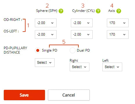 Cylinder-------CYL: +2.00~+4.00 or CYL:-2.00~-4.00 (ADD 10$)