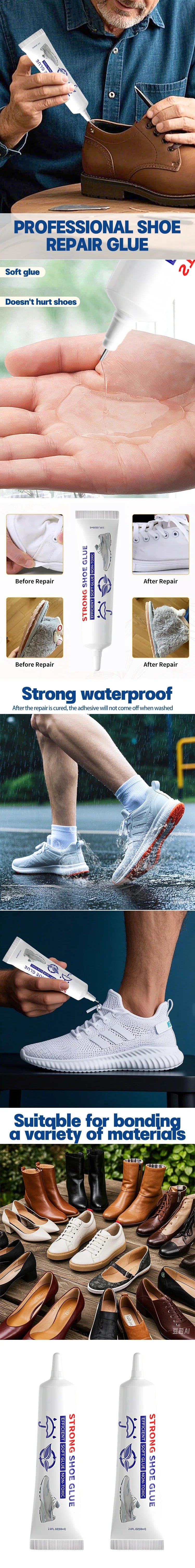 【Wide Application】Clear shoe glue sole adhesive makes long-lasting repairs and seal leaks on boots, sneakers, sandals, or hiking footwear. They also make a great sealant and bonding for leather belts, handbags, crafts.