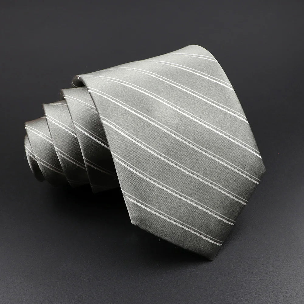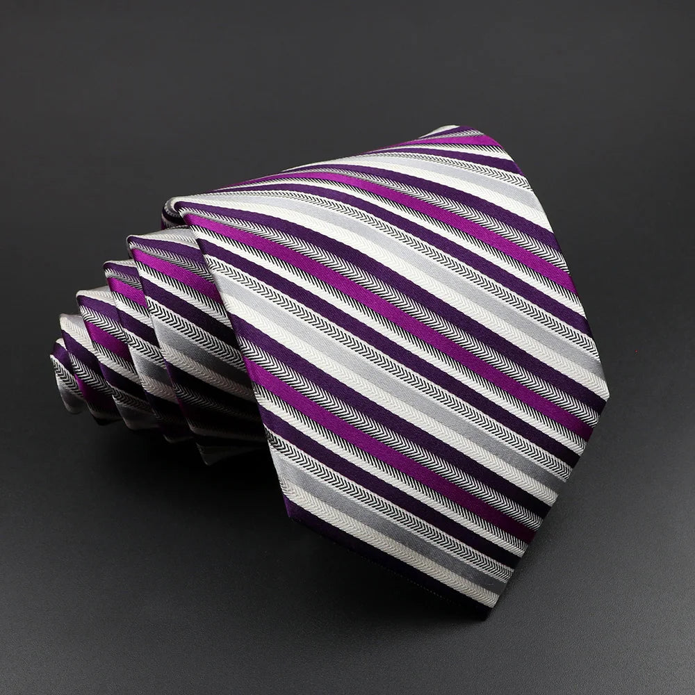 Cà vạt lụa cao cấp sọc kẻ cho nam - Xám Hồng Xanh