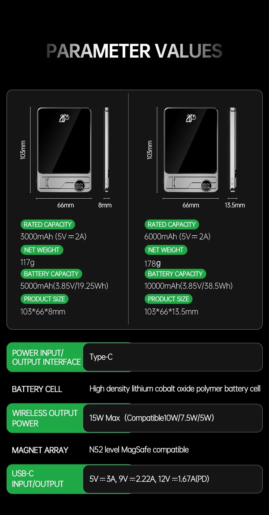Type-C Input /output : 5V/3A, 9V/2.22A, 12V/1.67A