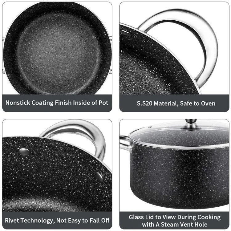 Chào mừng bạn đến với trải nghiệm nấu nướng đỉnh cao cùng Bộ Nồi Kim Loại Bền Vững 10PCS! Được thiết kế với chất liệu đồng đáy đôi, bộ nồi này không chỉ bền bỉ mà còn giúp phân phối nhiệt đều, giúp món ăn của bạn luôn thơm ngon và chín đều. Với lớp phủ nhôm cát bắn và đá hoa cương, sản phẩm không chỉ đẹp mắt mà còn an toàn cho sức khỏe. Đây là sự lựa chọn hoàn hảo cho những ai yêu thích nấu ăn và muốn bảo vệ môi trường.