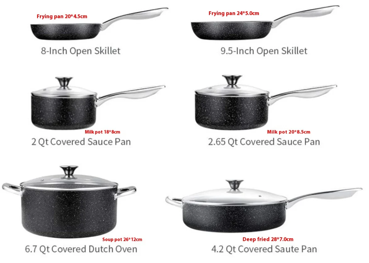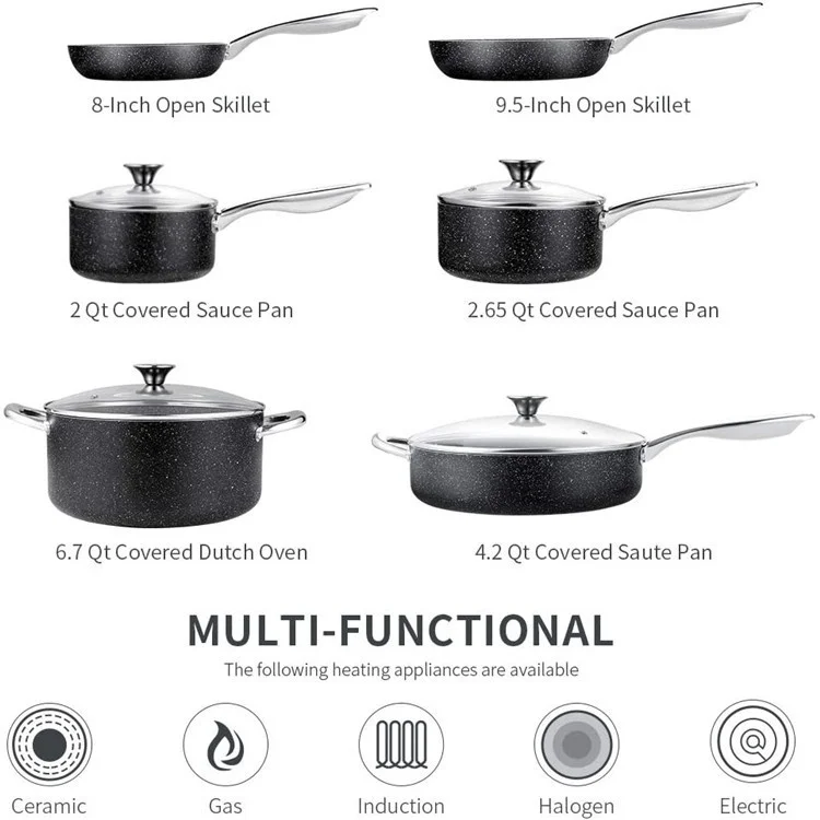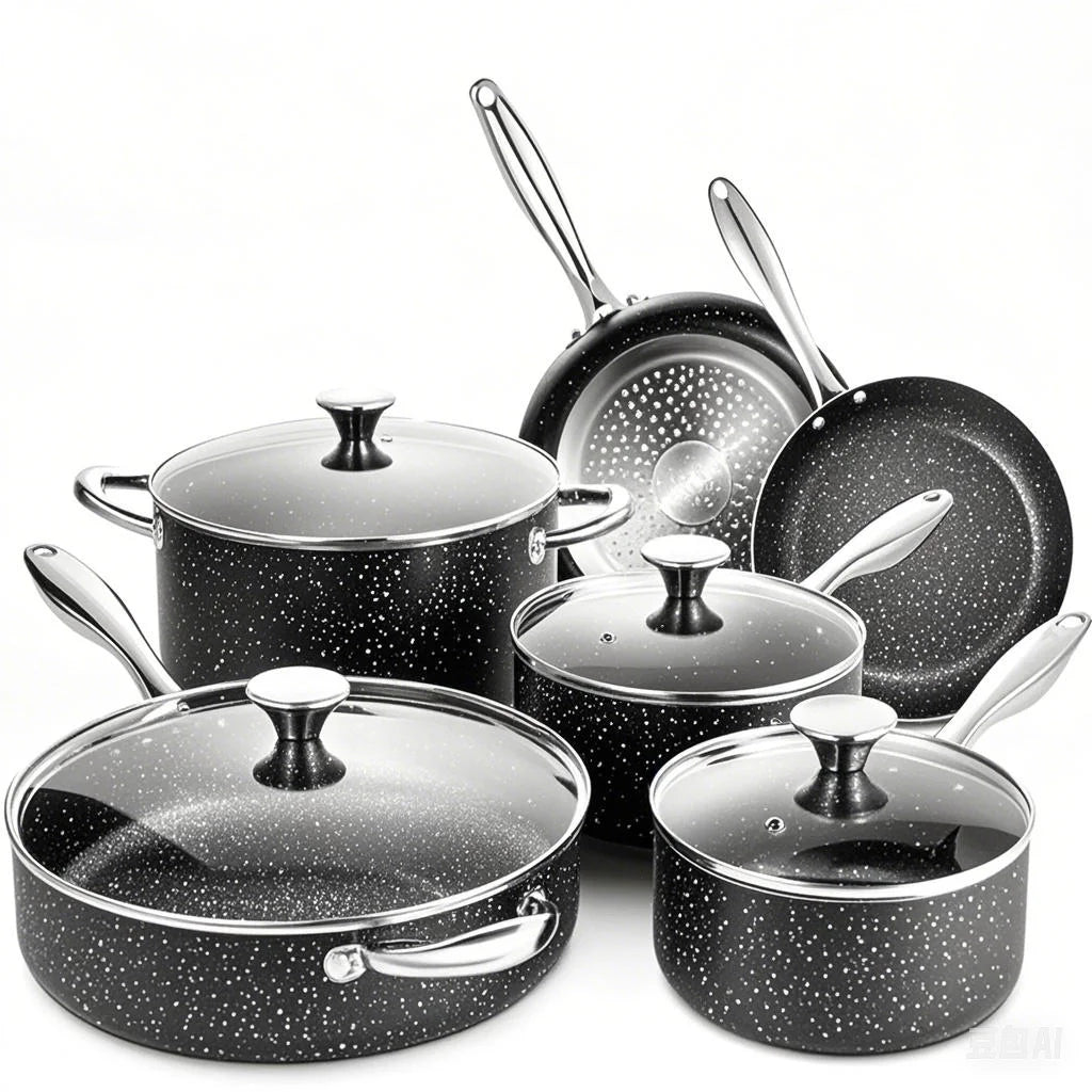 Bộ Nồi Kim Loại Cổ Điển 10 Món Bền Vững Chống Dính