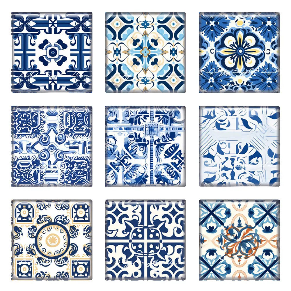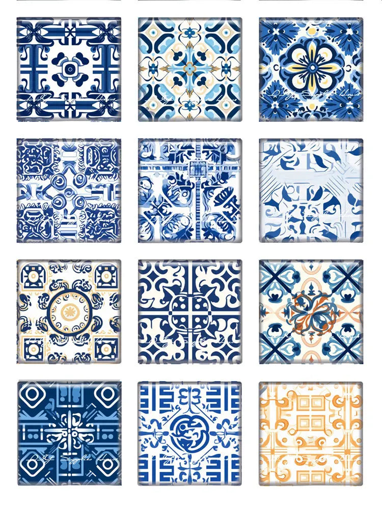 Name:10pcs/lots Square Photo Glass Cabochon Blue Geometric Pattern Charms Demo Flat Back Cameo For Diy Jewelry Making Accessories