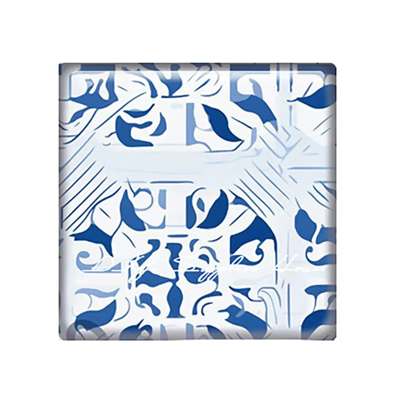 Mặt Kính Vuông Hoa Văn Xanh Cho Trang Sức Handmade