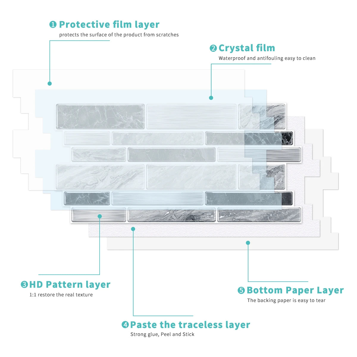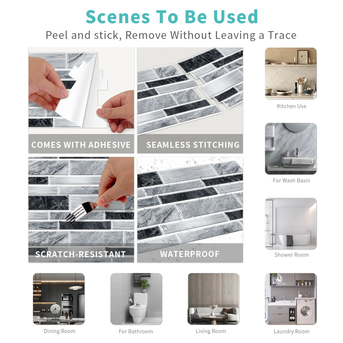 You can use it to decorate the walls, floors, tables, glass surfaces, kitchen and so on. The product surface with protective film to prevent scratches.