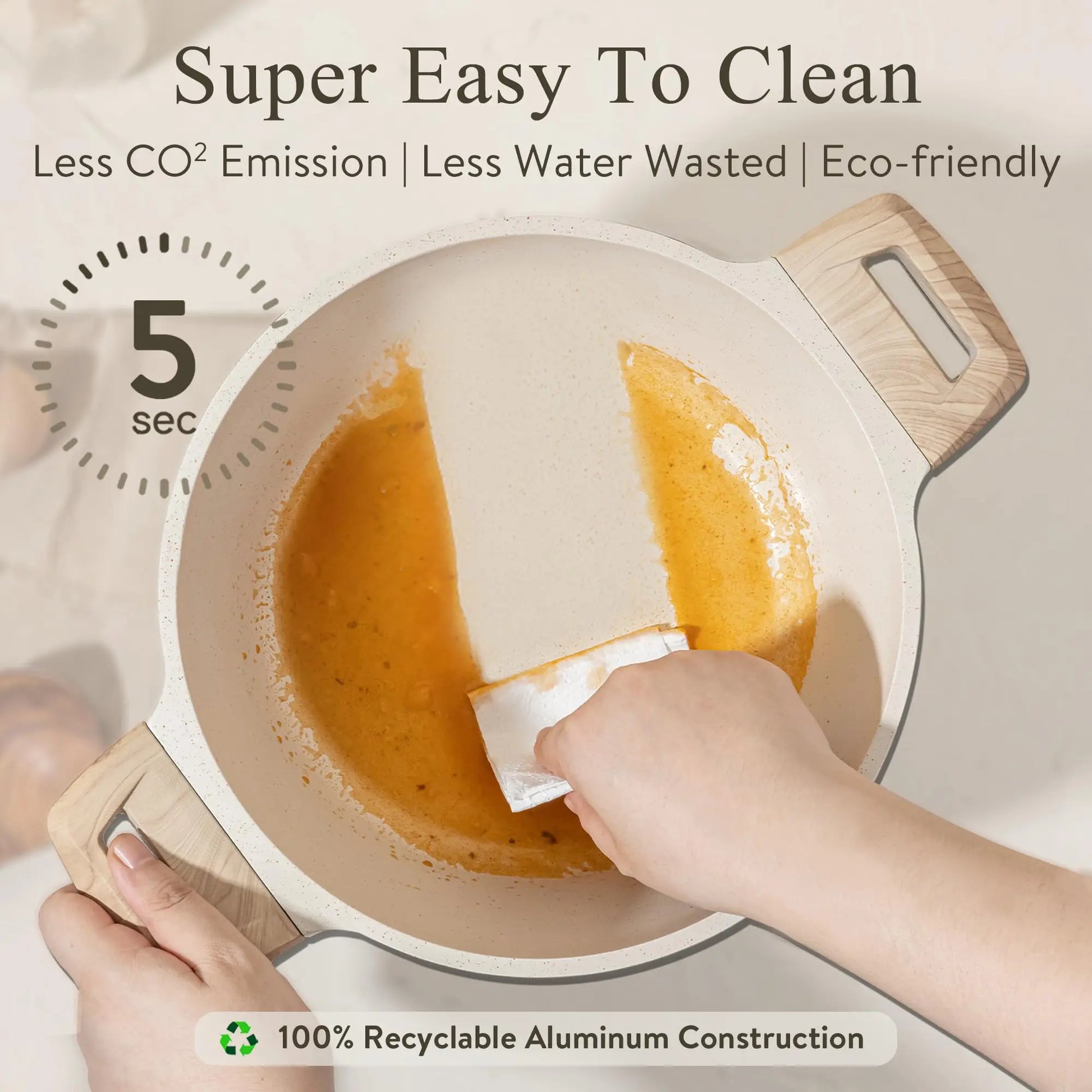 Bộ nồi chảo 17 món Classic Cookware Set là lựa chọn hoàn hảo cho căn bếp hiện đại của bạn. Sản phẩm gồm các loại nồi, chảo chống dính màu kem sang trọng với tay cầm gỗ chắc chắn, mang đến vẻ đẹp tự nhiên và cảm giác cầm thoải mái. Bộ nồi sử dụng được trên bếp từ, đảm bảo sự tiện lợi tối đa. Nắp kính cường lực giúp bạn dễ dàng quan sát món ăn trong quá trình nấu nướng. Hãy cùng trải nghiệm bộ nồi chảo đa năng này để tạo nên những bữa ăn thơm ngon cho gia đình bạn!
