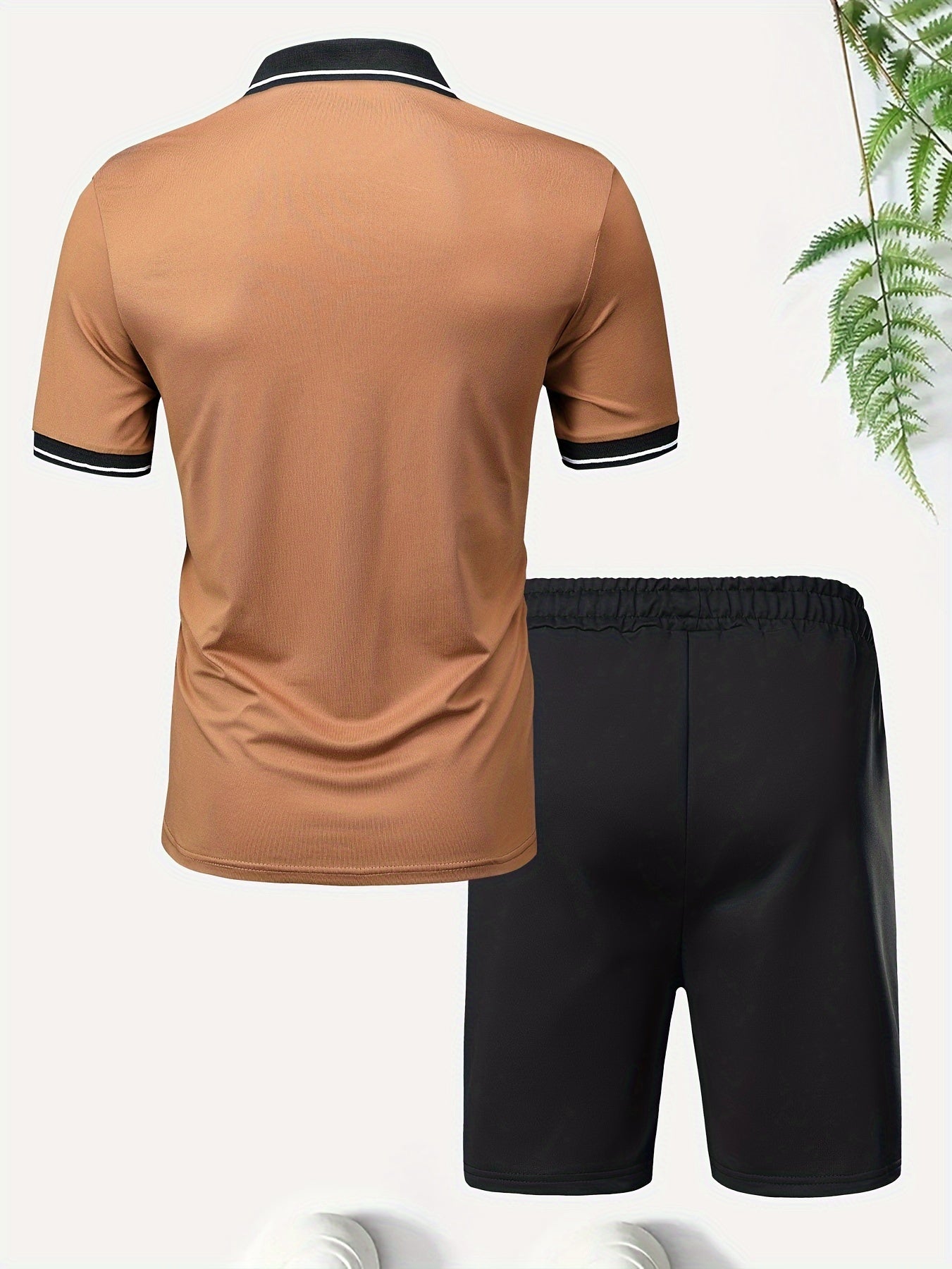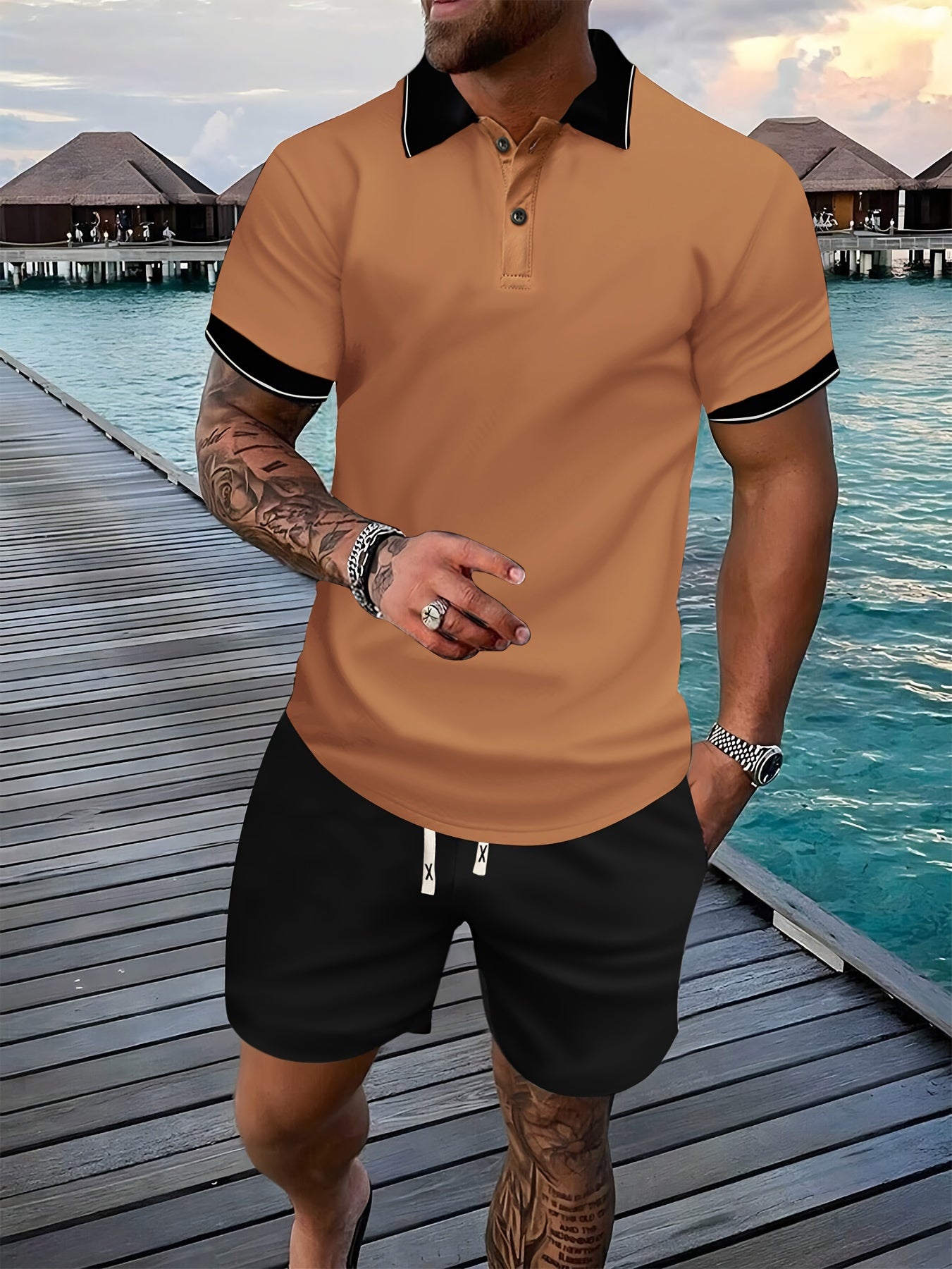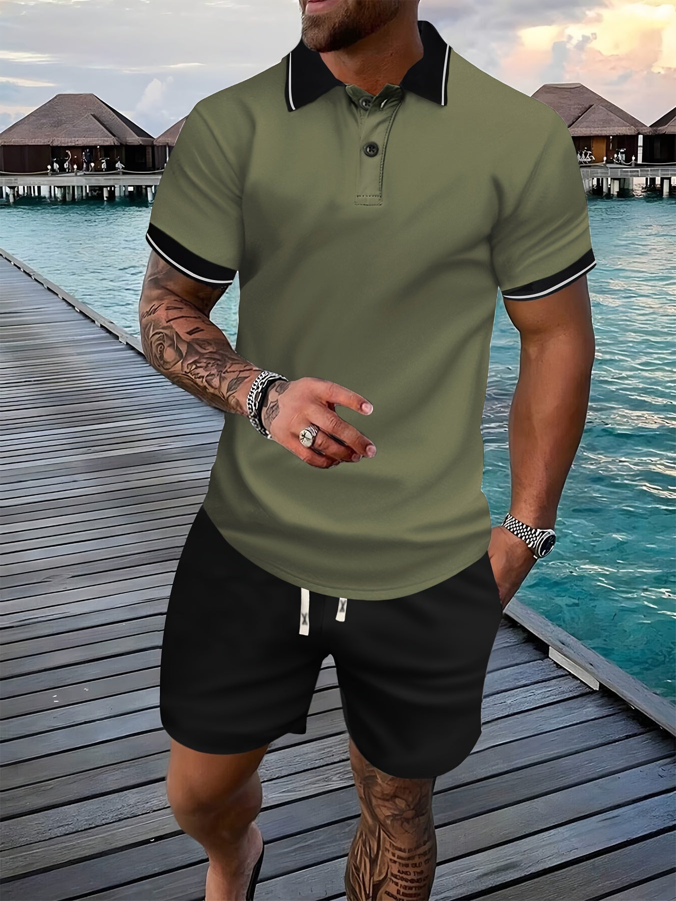 Bộ Golf Nam Hè: Áo Viền Tương Phản & Quần Dây Rút