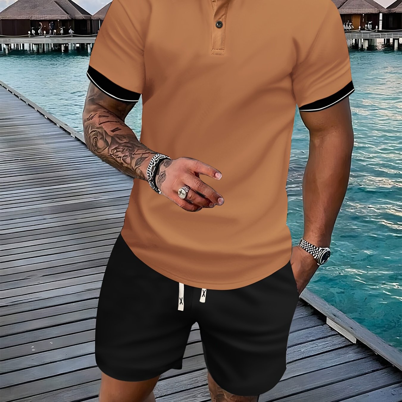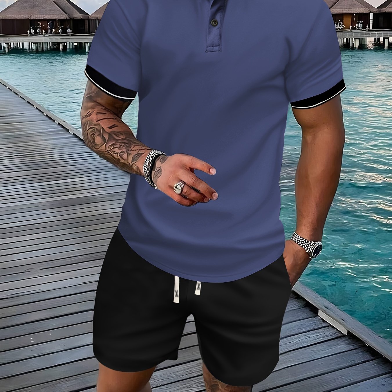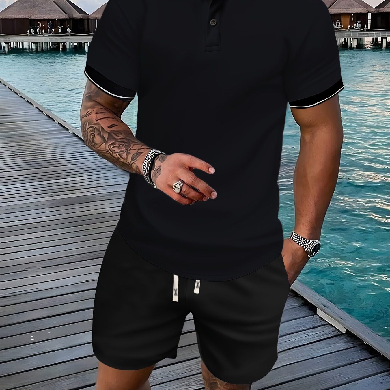 Bộ Golf Nam Hè: Áo Viền Tương Phản & Quần Dây Rút