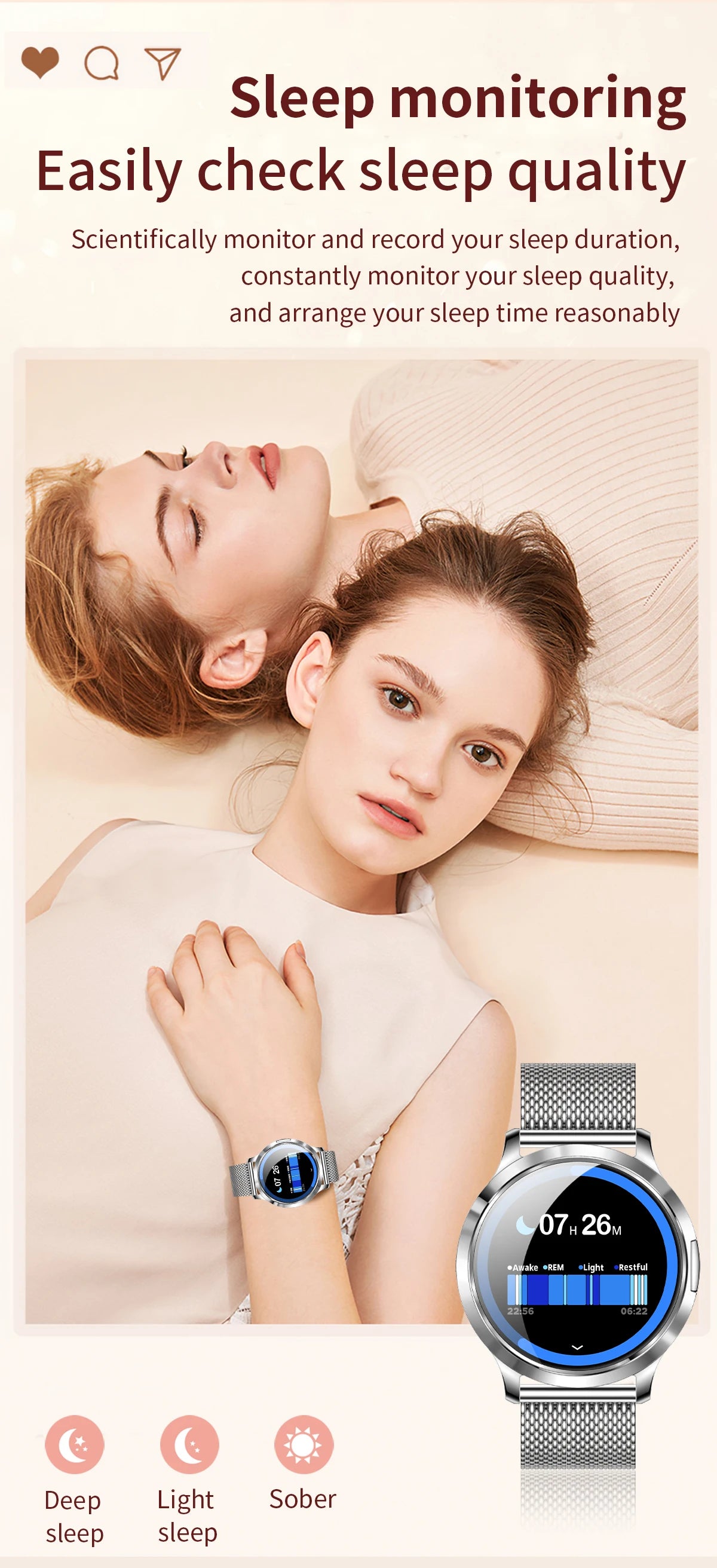 【comprehensive health monitor】This smartwatch features advanced optical sensors for precise monitoring of heart rate and blood oxygen (SpO2), keeping an eye on your health. It also tracks your sleep stages to improve your rest and health.