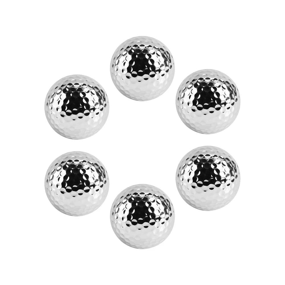 2Pcs Silver Two Layer Golf Balls Golf Practice Balls Golfer Swing Putter Training Gift Ball 42.67mm for Indoor Outdoor Balls Game